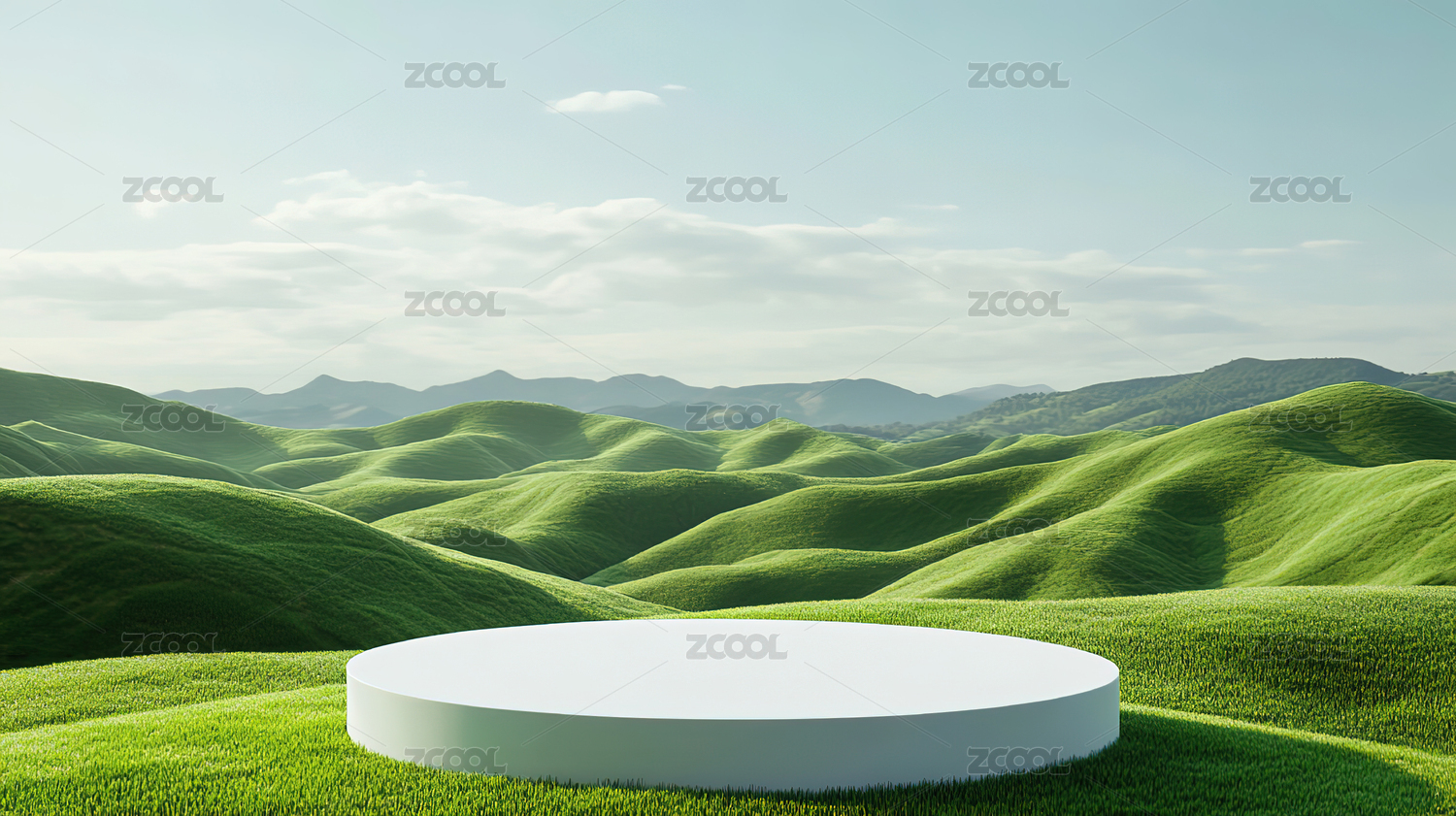 3D渲染户外高山草坪电商产品展台背景
