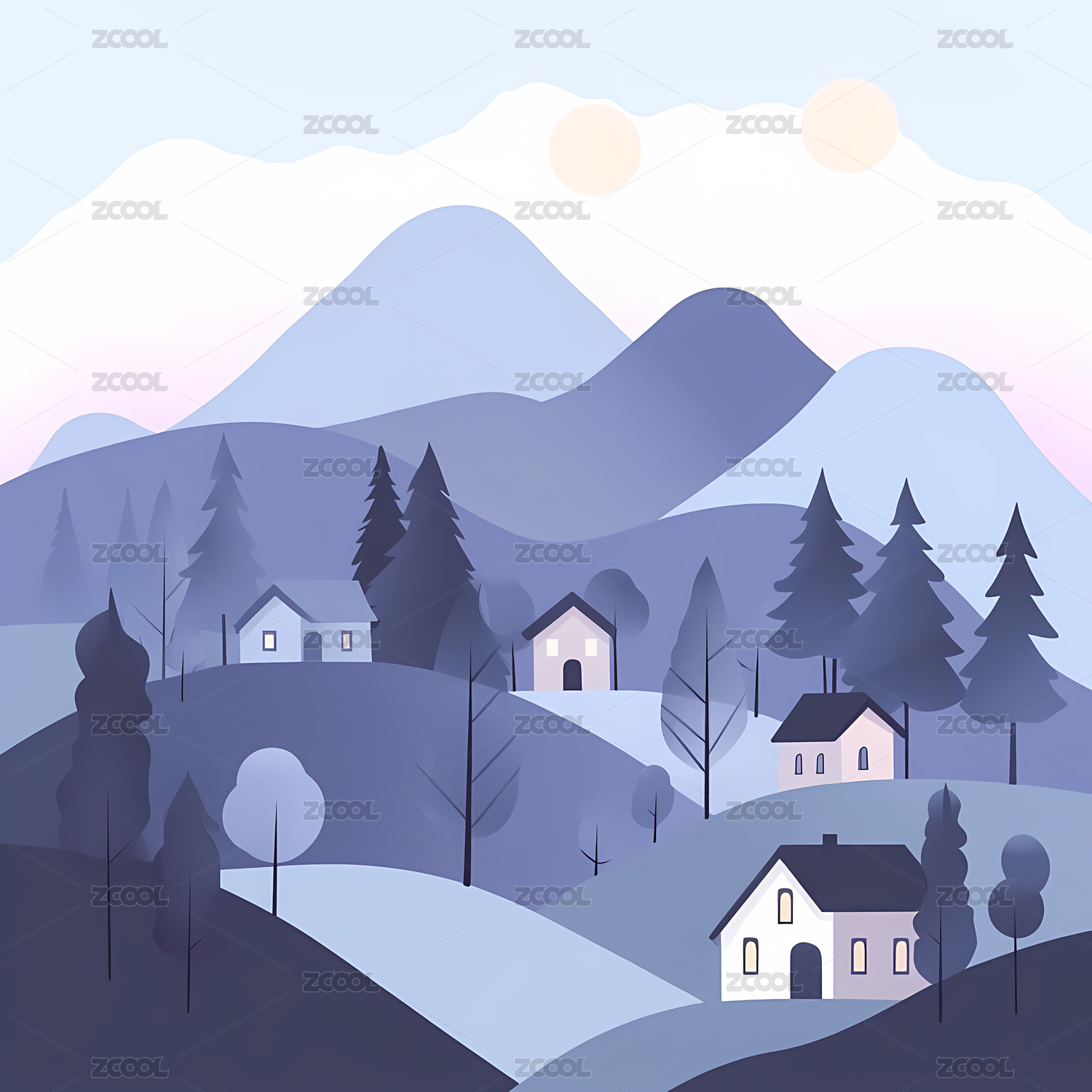 田园风光,自然,宁静,插画,卡通,房屋,清新,简约,背景,壁纸