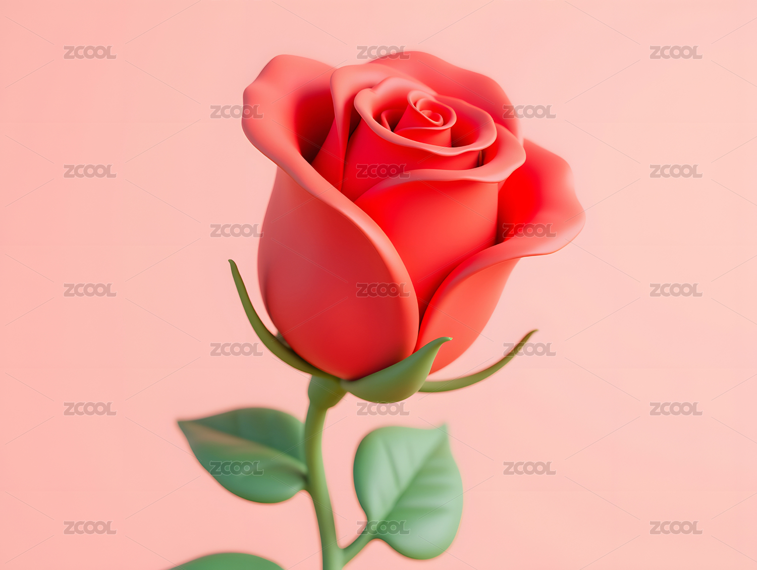 红玫瑰花朵与粉色渐变背景的浪漫构图
