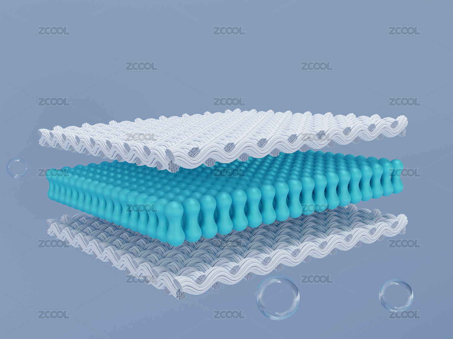 蓝色微观纤维带孔面料透气清凉分层结构图