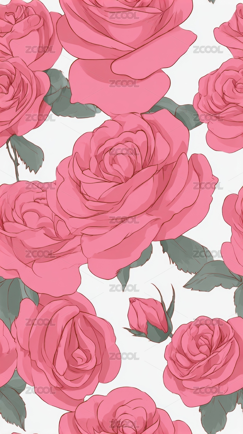 粉底素描风玫瑰花图案
