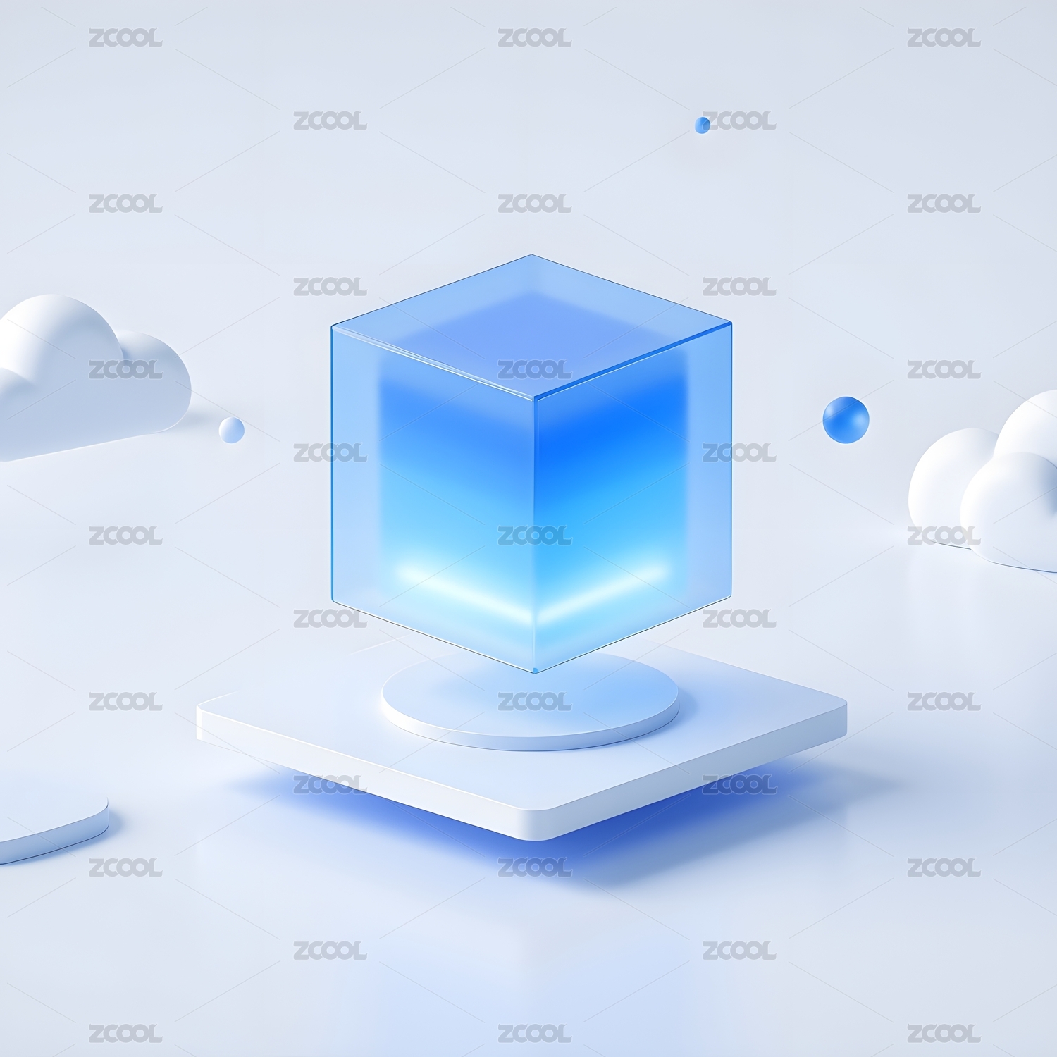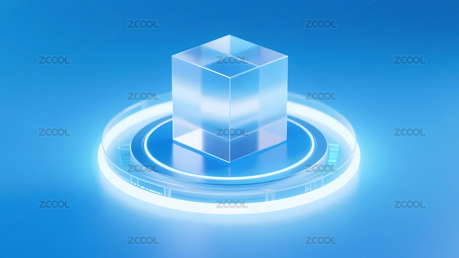 3D卡通透明玻璃蓝橙宝石材质魔方图标