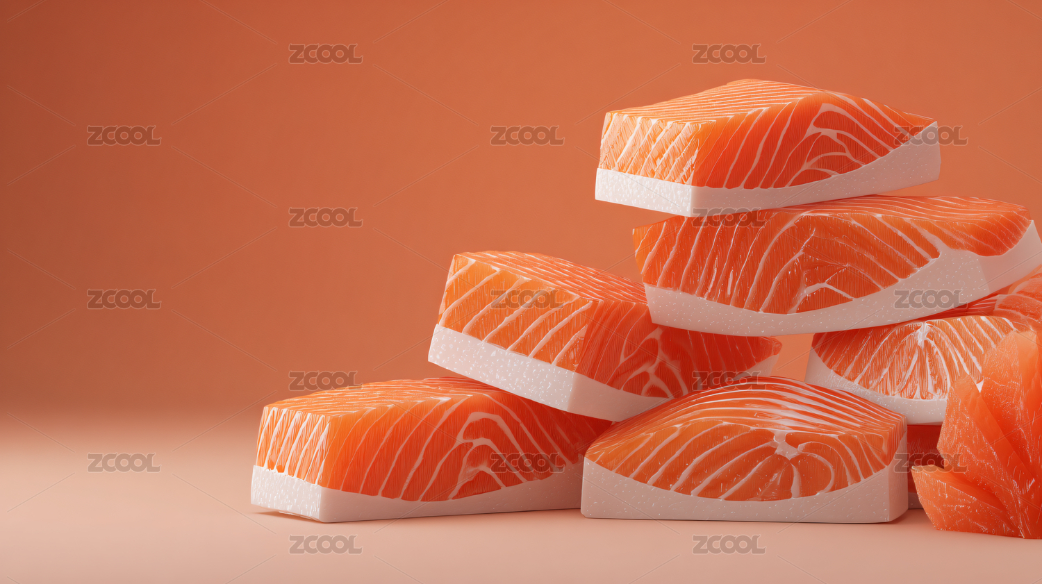 新鲜的三文鱼刺身海鲜,简约背景