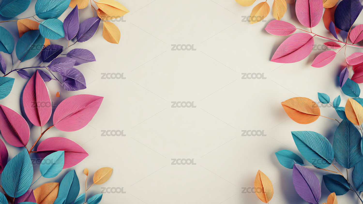 米色空白背景四周平铺着鲜花和叶子平面布局