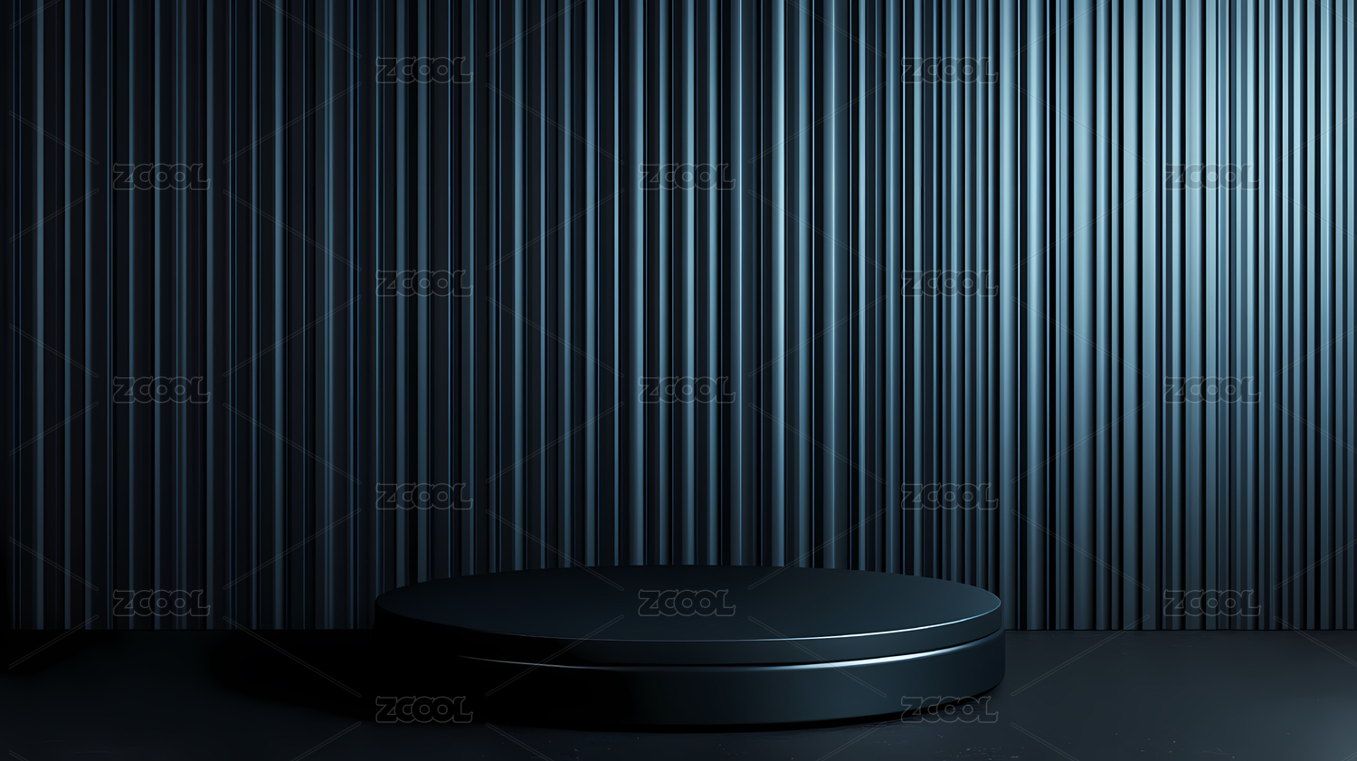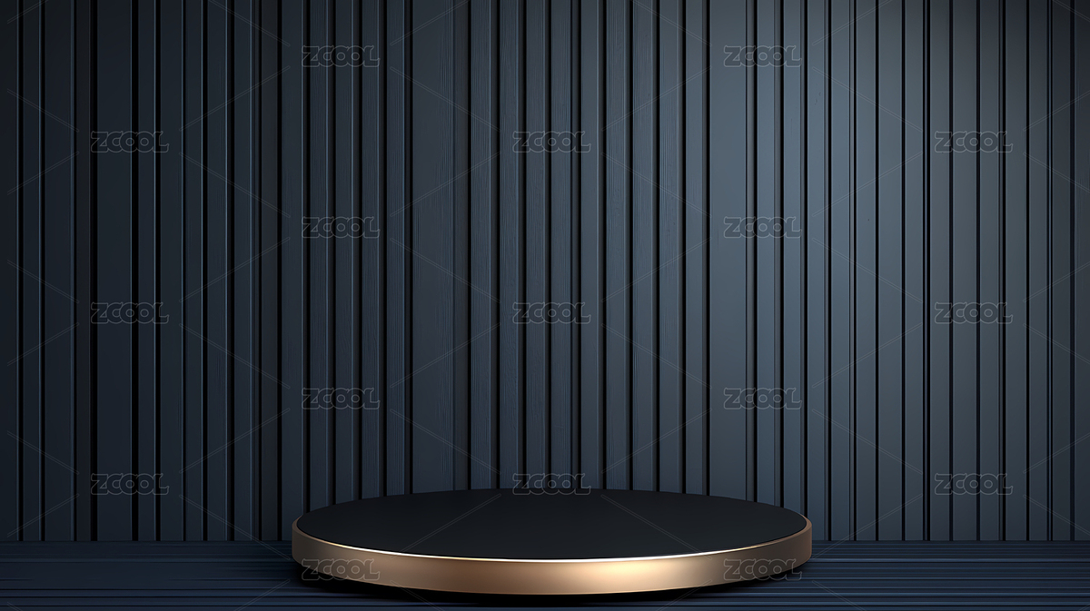 深蓝色木质背景下,一个圆形展台静静伫立