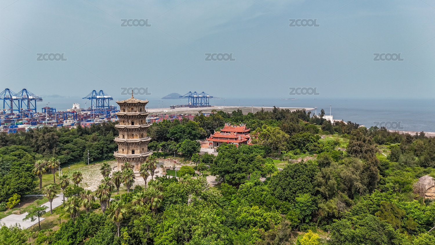 福建泉州市石狮市宝盖山姑嫂塔风光航拍