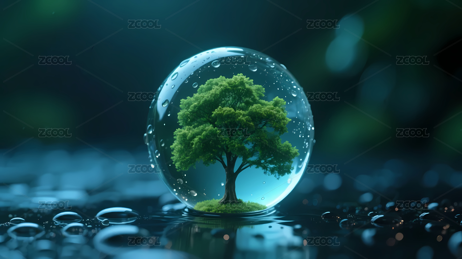 玻璃球中幼苗扎根荒地,城市倒影映现希望