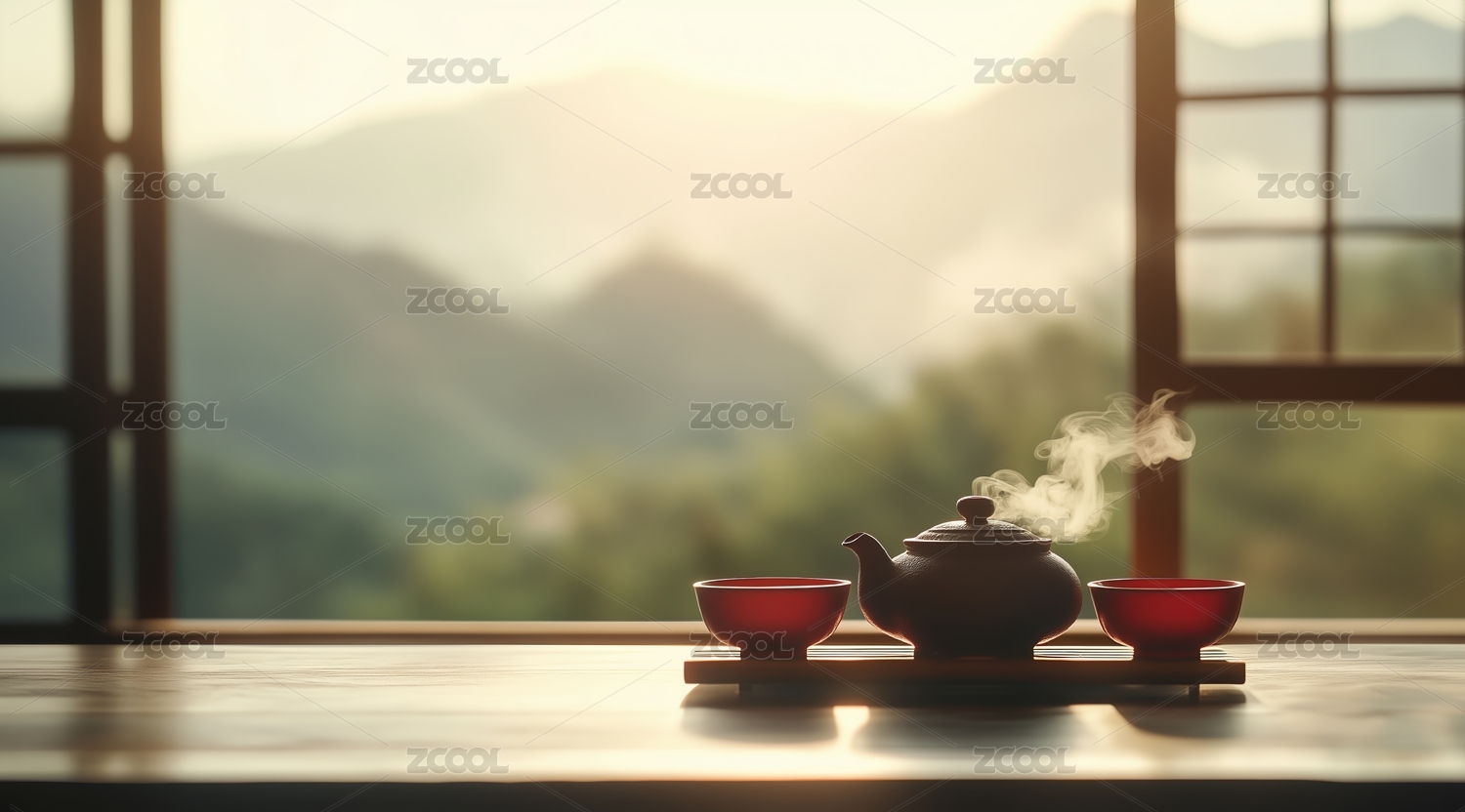 花朵,自然,宁静,茶杯,湖水,热气,豆子,木板,雾气,山峦
