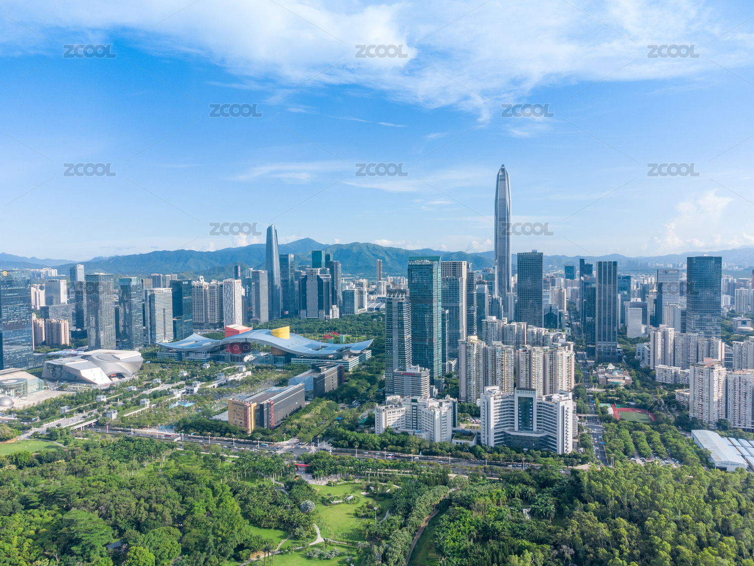 深圳莲花山山顶广场远眺福田CBD建筑群