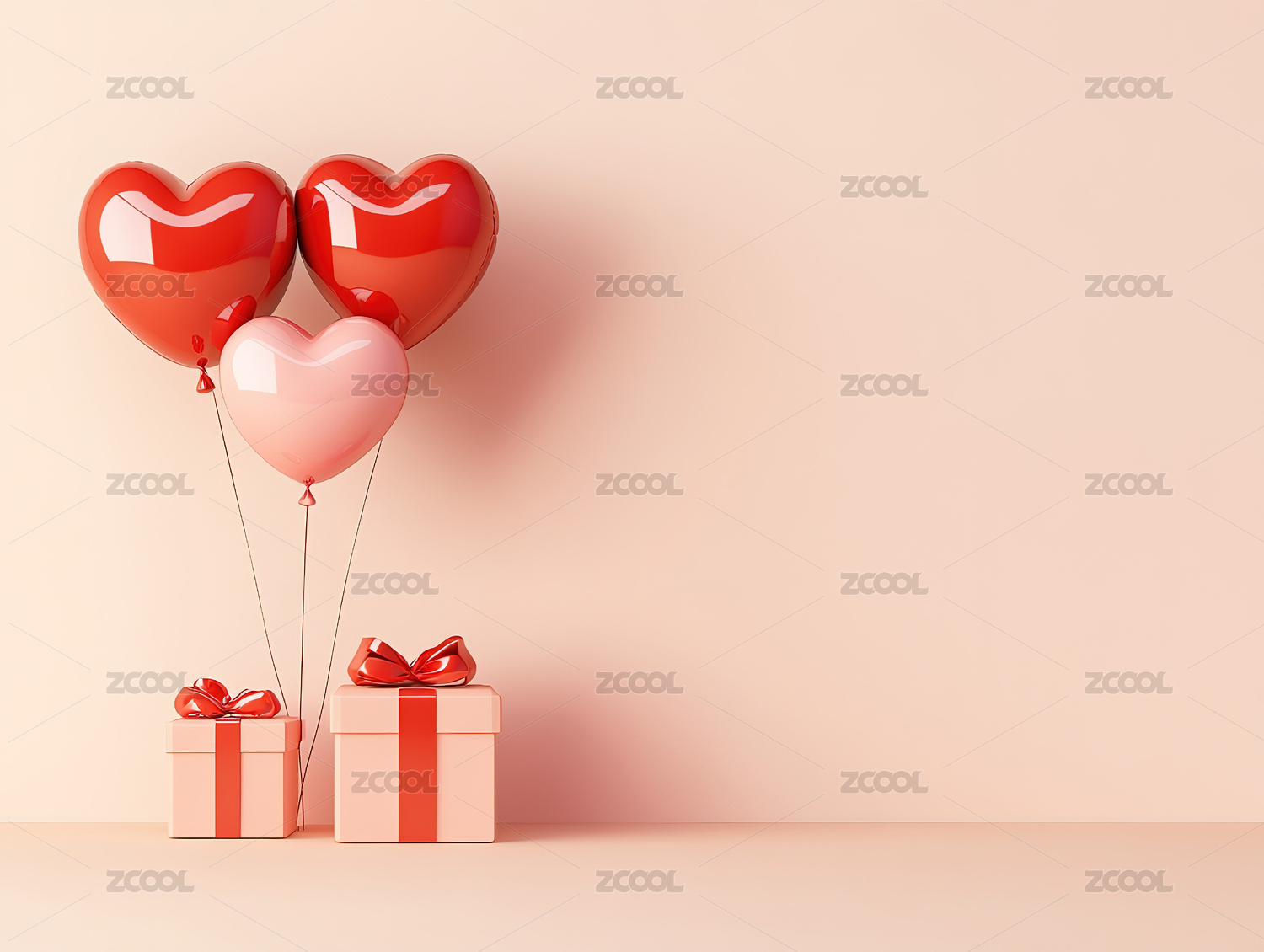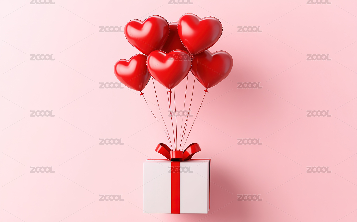 圣诞节爱心形状气球挂着粉色礼盒插画