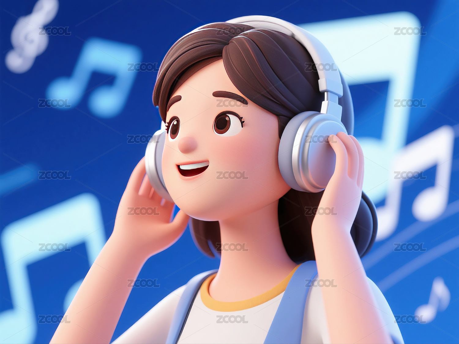 插画,微笑,卡通,男生,插图,学生,耳机,年轻,女生,大眼睛