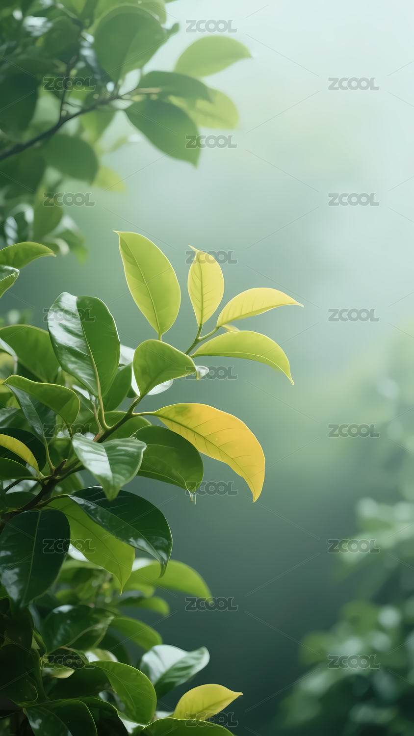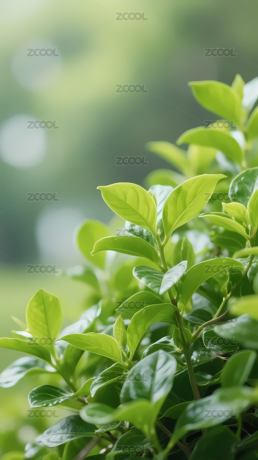 户外生机勃勃的绿色植物叶子特写,竖构图