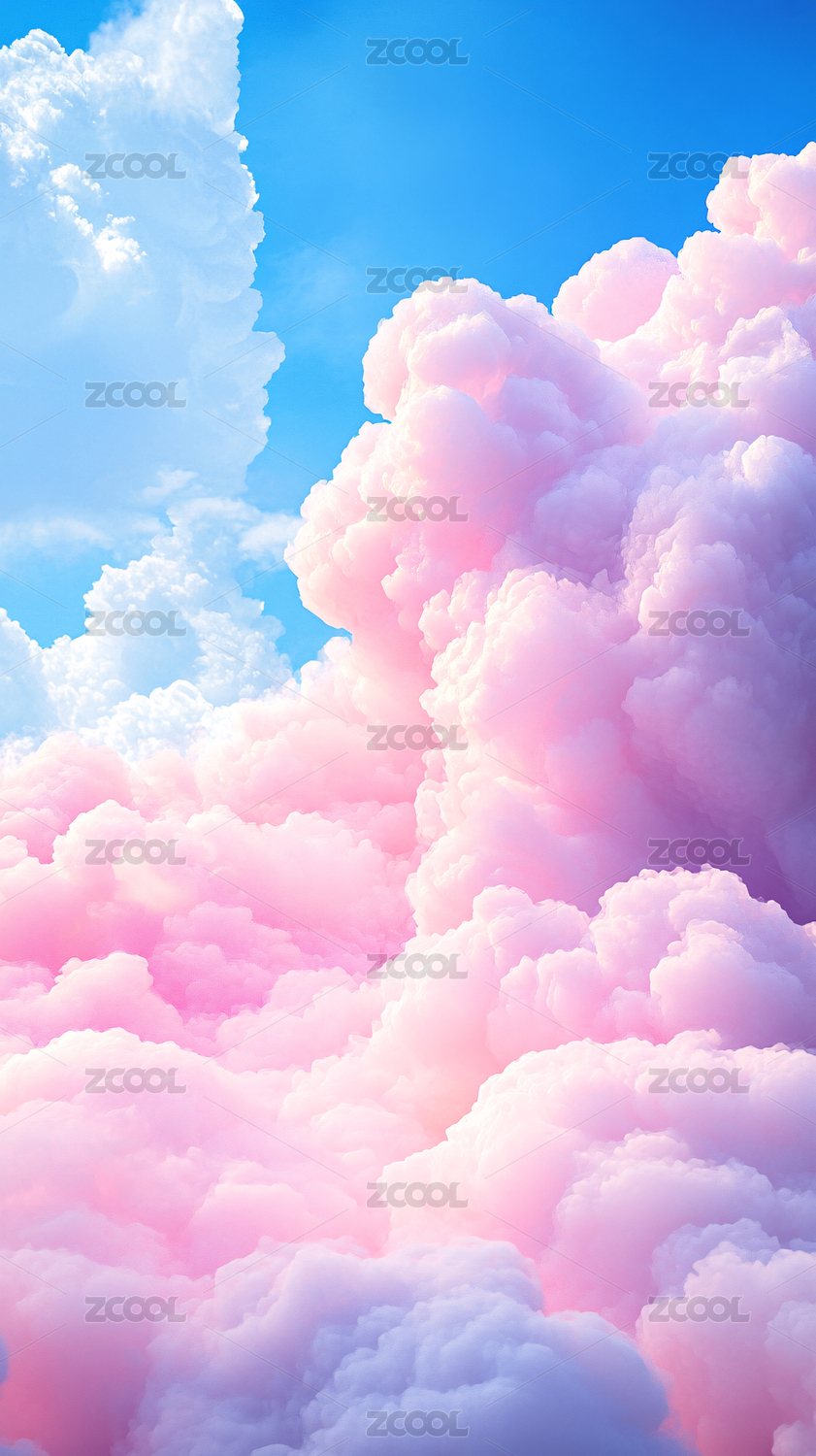 梦幻粉色云朵的天空