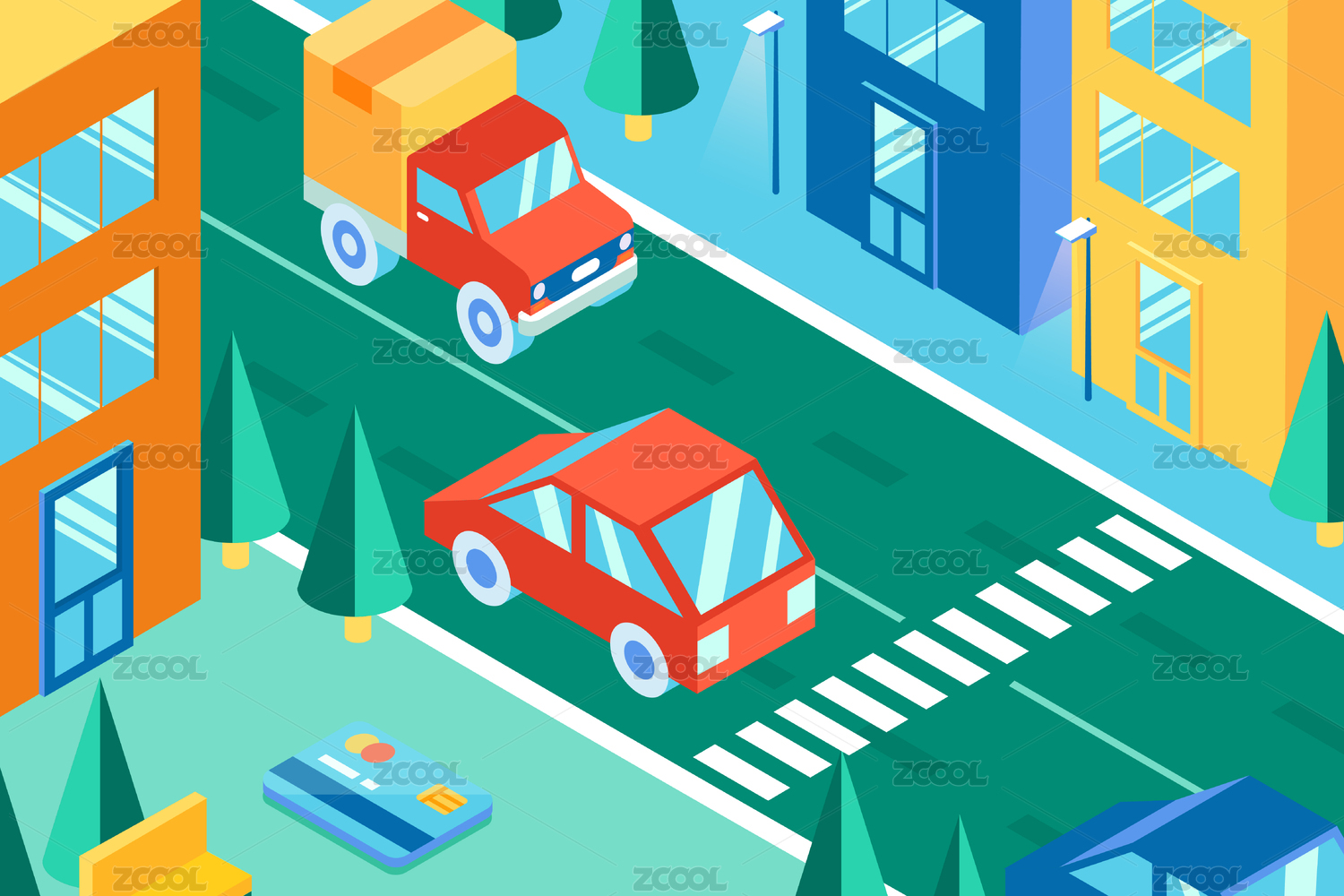 等距城市出行电商矢量插画