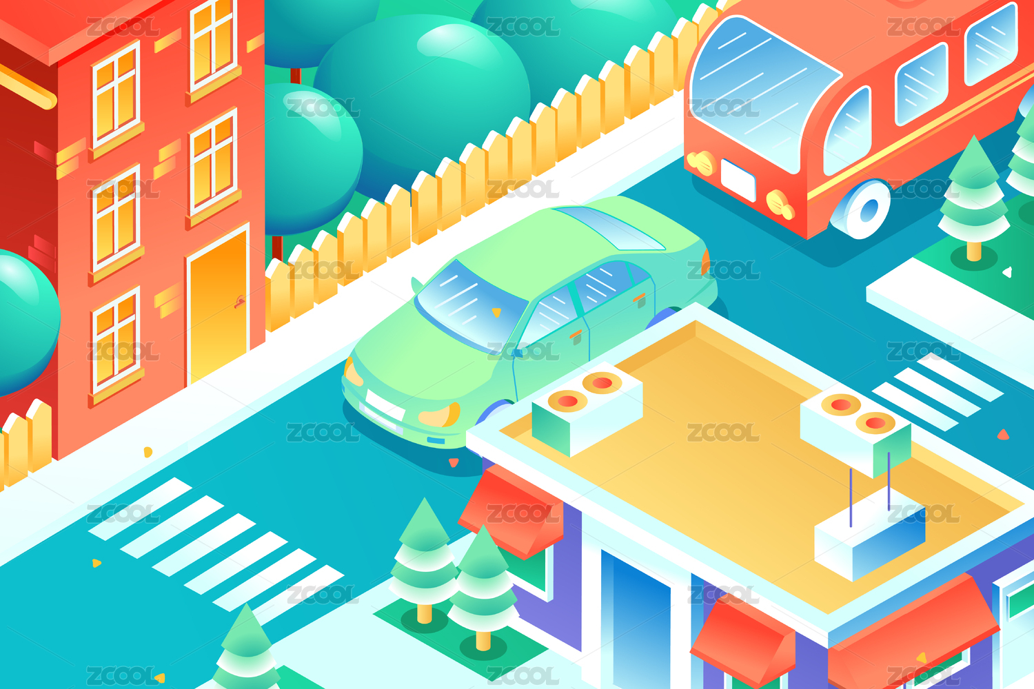 2.5D红色汽车和小房子