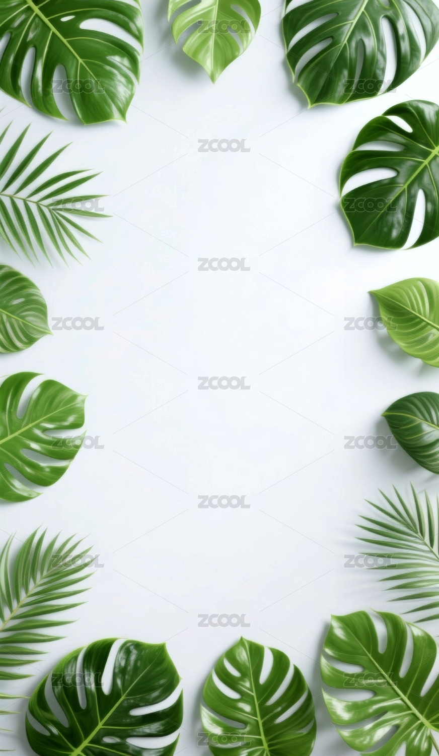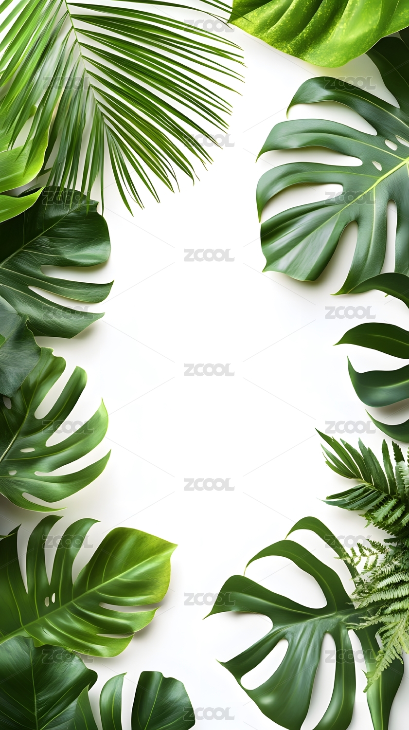 热带叶子白色背景顶视图海报PPT背景