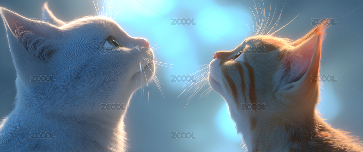两只猫向上凝视