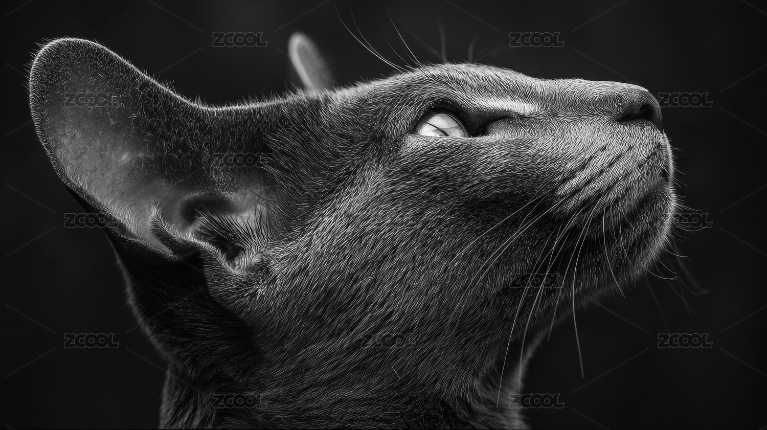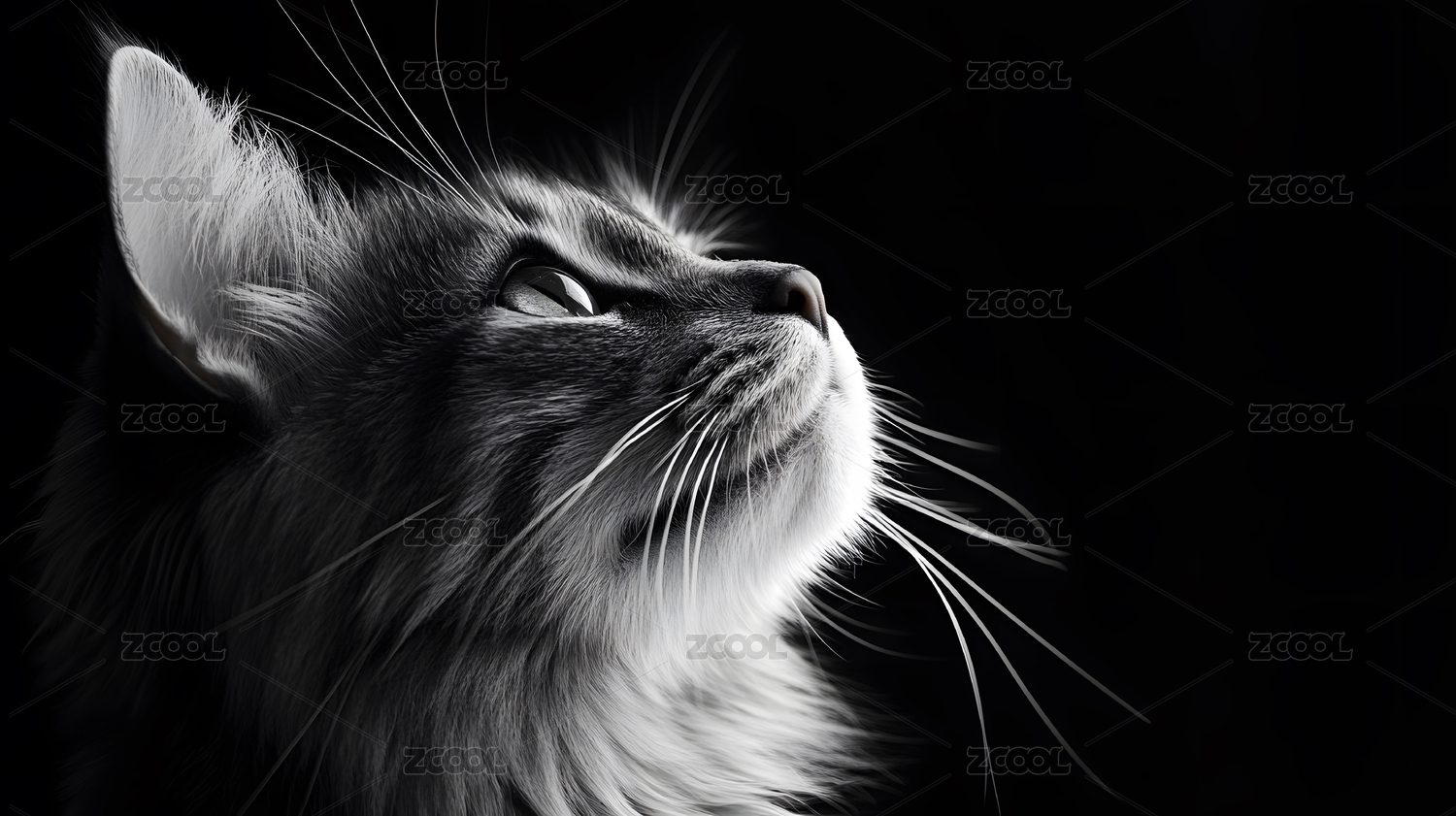 黑白猫咪侧脸特写