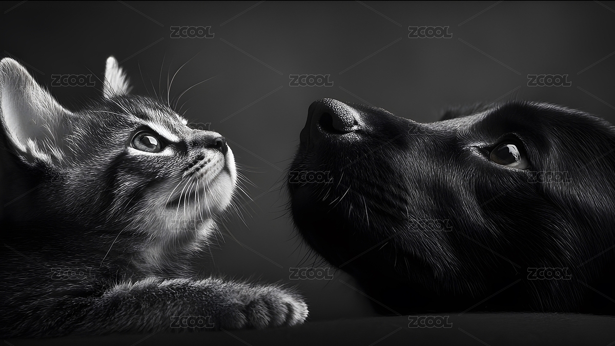 猫狗依偎的宠物摄影