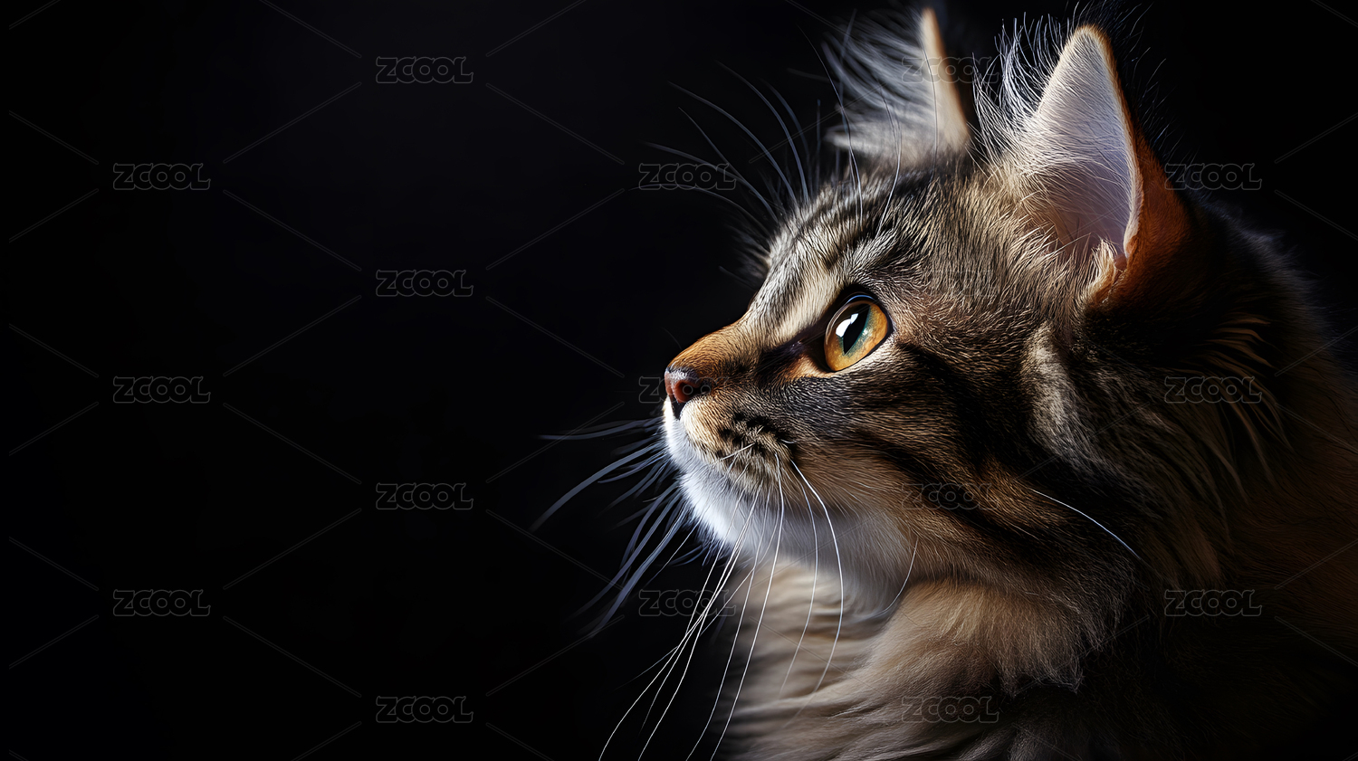 侧脸猫咪凝视远方