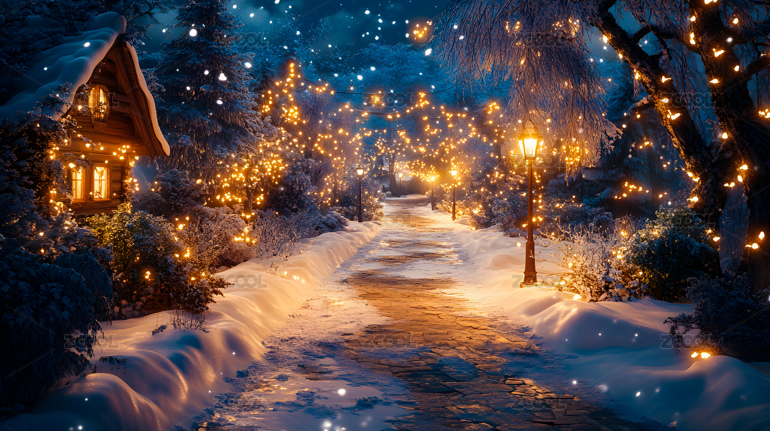圣诞节圣诞树背景壁纸场景节日房屋雪景