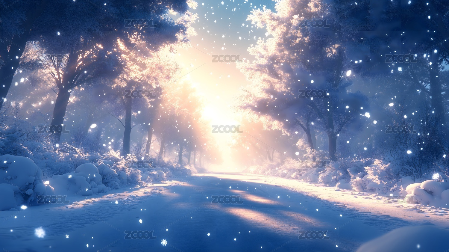 雪景,拱门,森林,雪花,梦幻,唯美,浪漫,白色,冰雪,雪松