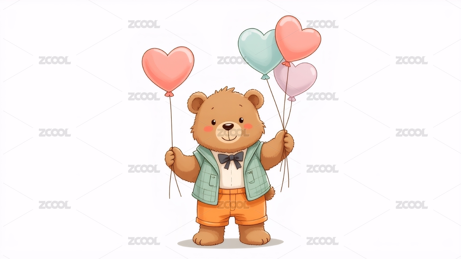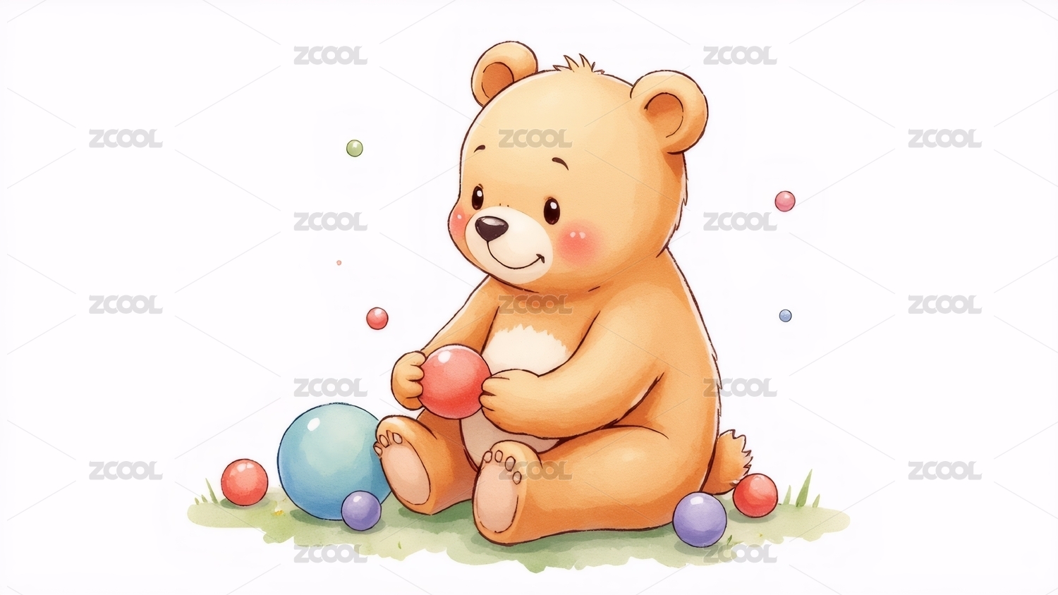 卡通,可爱,插画,儿童,泰迪熊,玩具,玩偶,毛绒玩具,彩色,气球