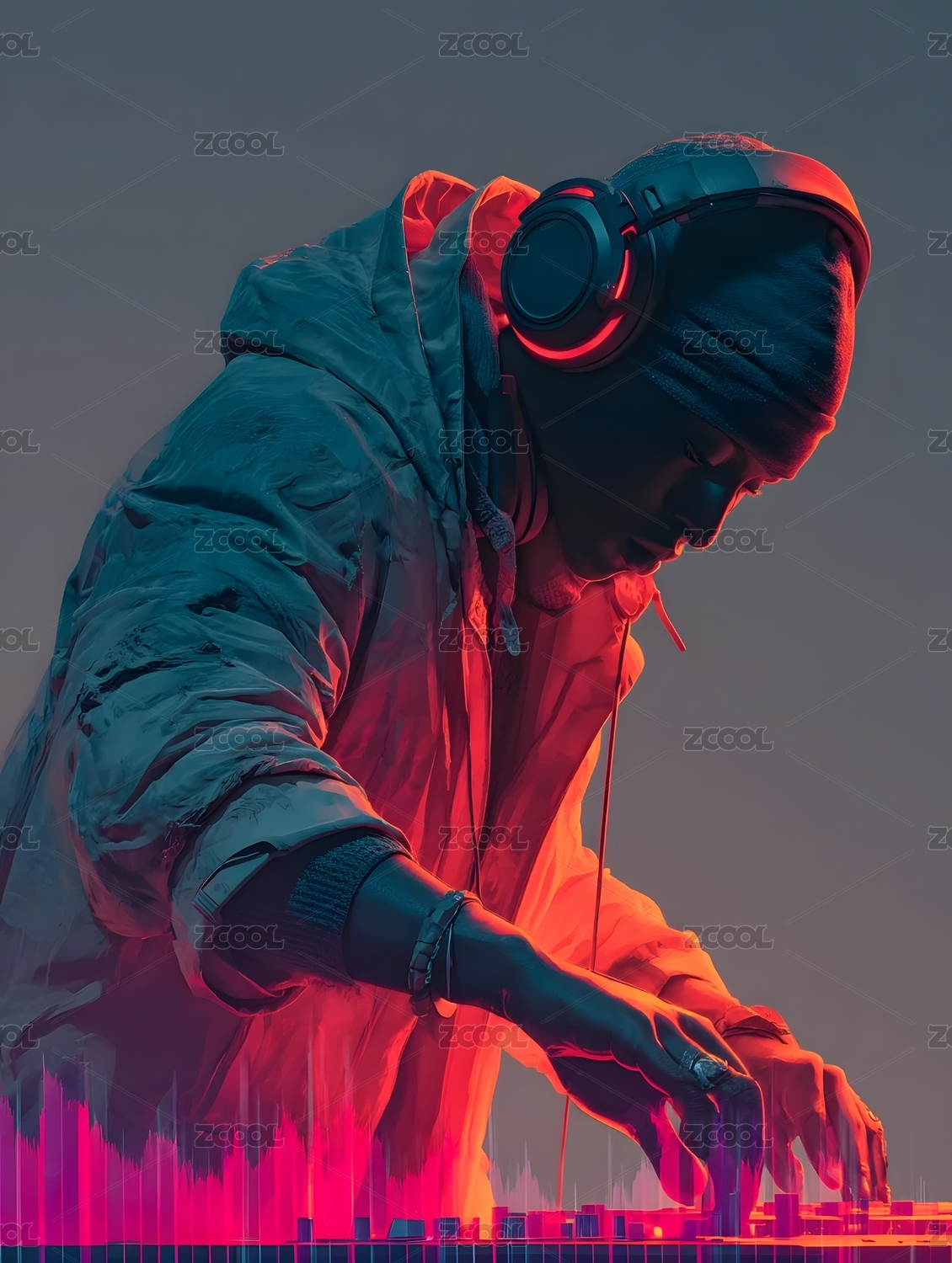 红色金属质感耳机人像