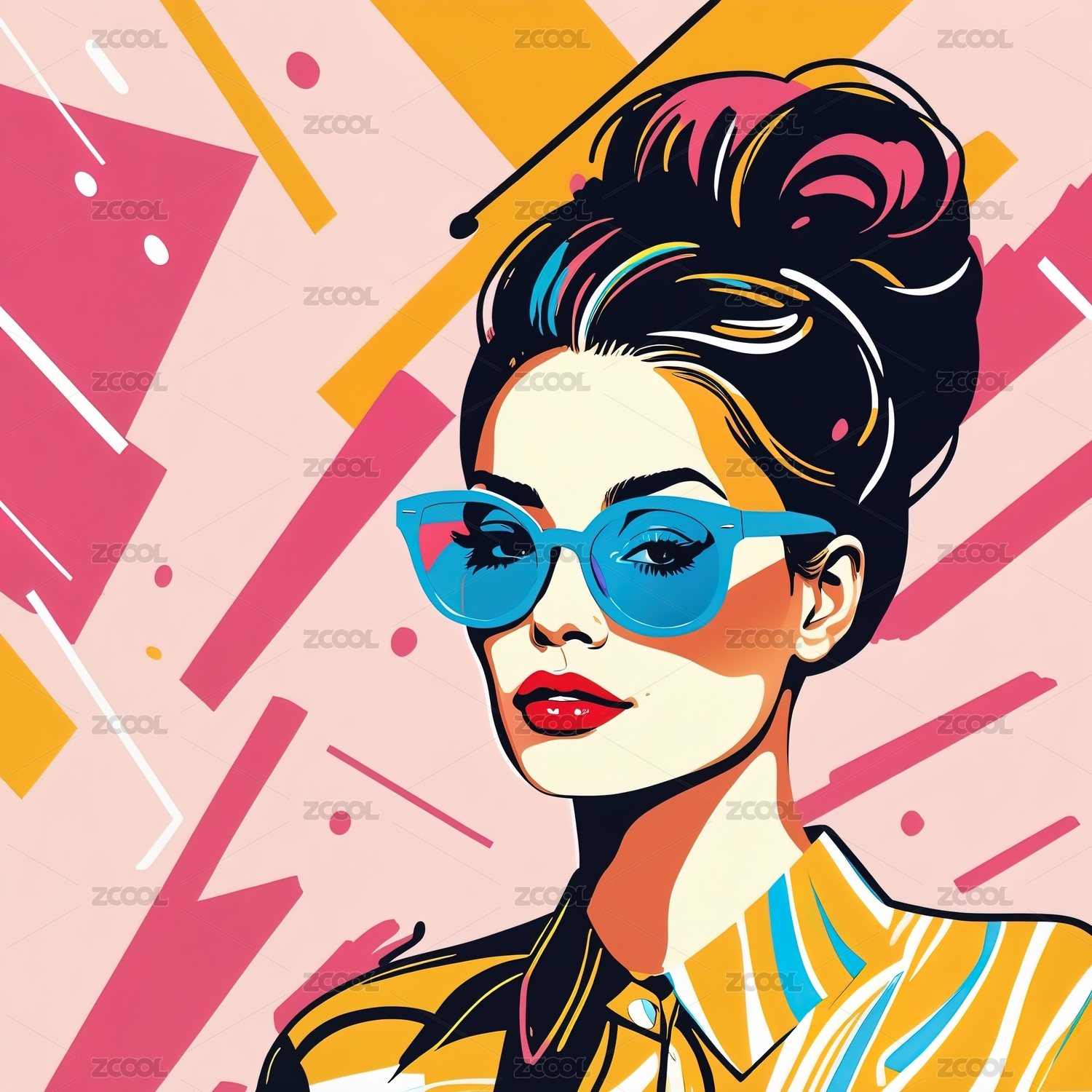 戴着彩色眼镜化着鲜艳妆容大胆女性