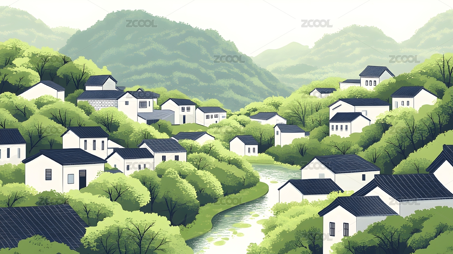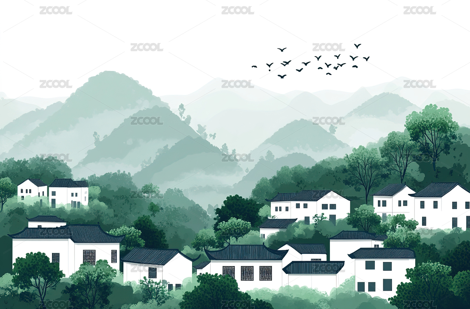乡村,房屋,中国风,插画,田园,水墨画,建筑,水乡,旅游,水墨