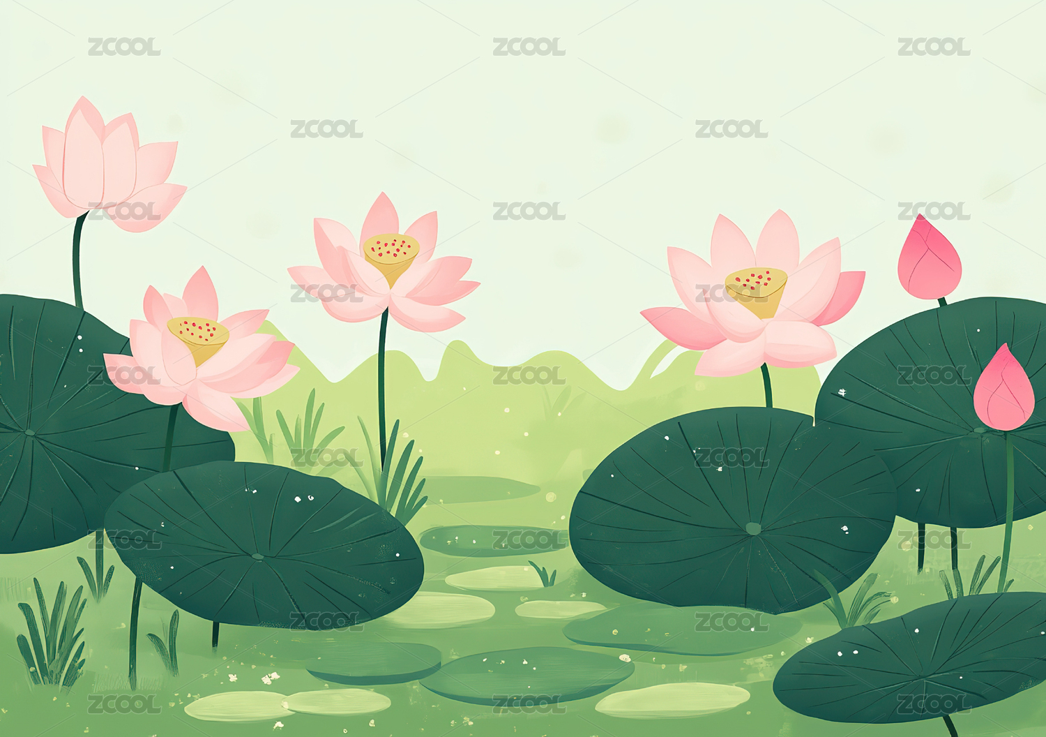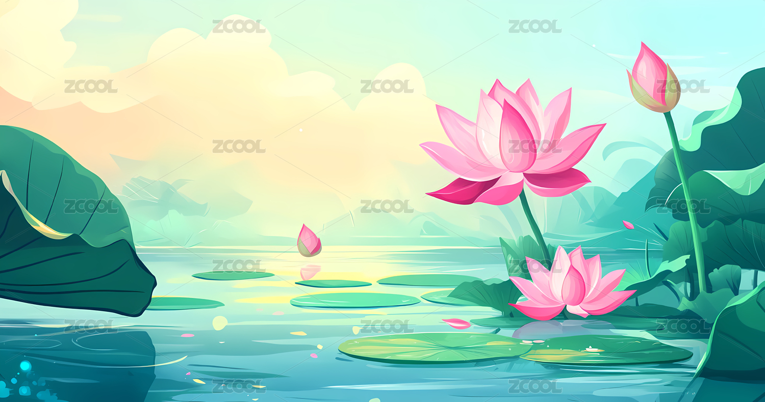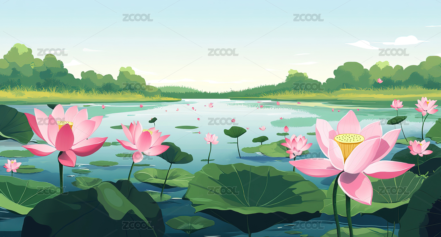 荷花丛清新风山水场景