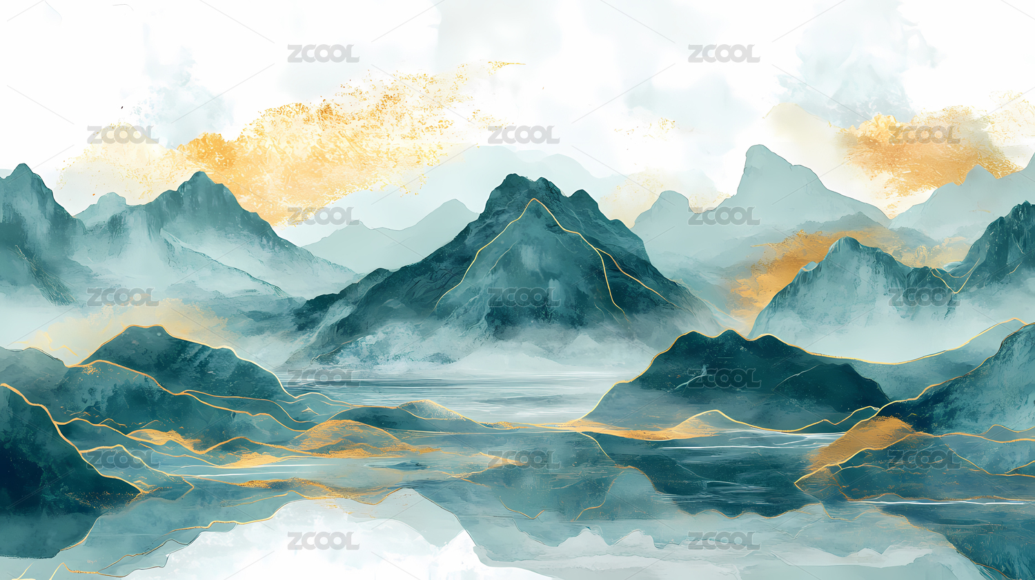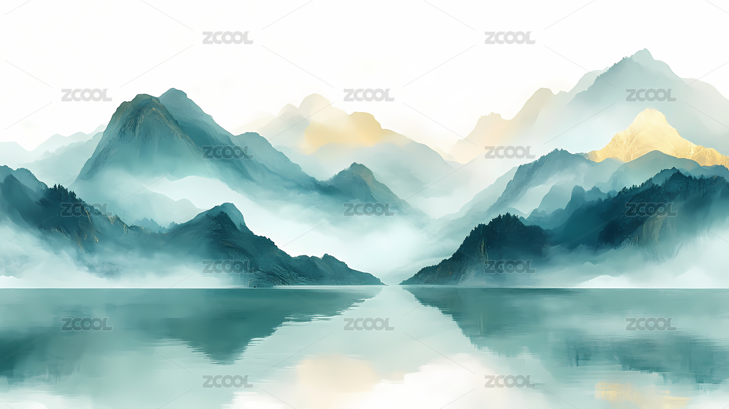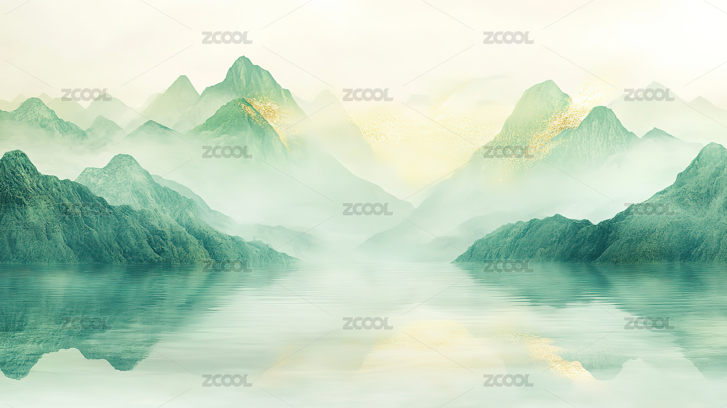 国风,山水,意境,朦胧,写意,山峰,艺术,背景,水墨,倒影