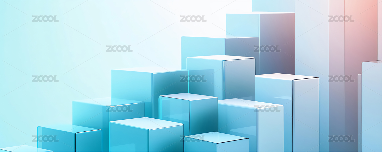 浅蓝色几何立方体阶梯状构图