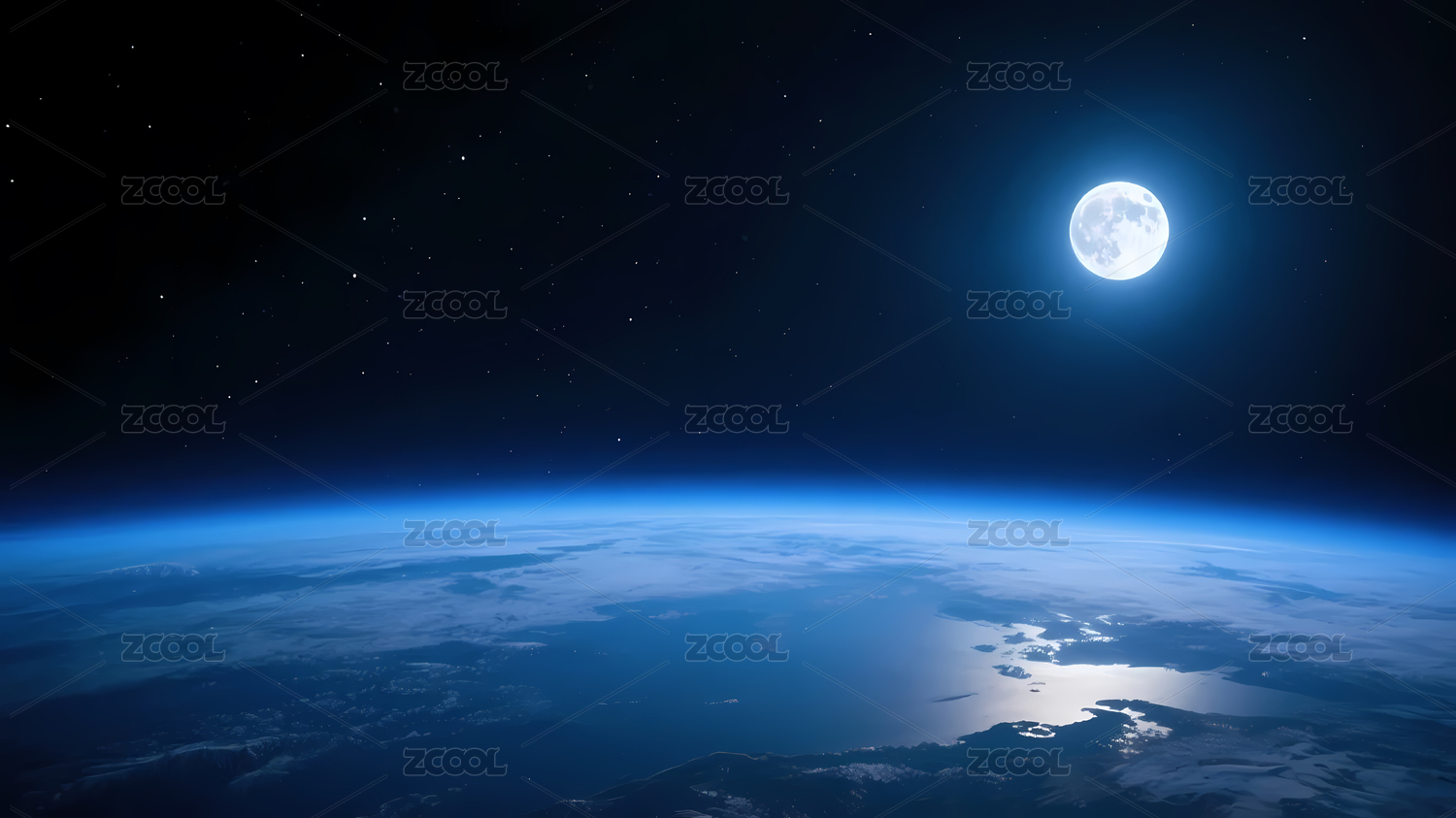 太空俯视地球美丽景象宇宙蓝色科技感背景