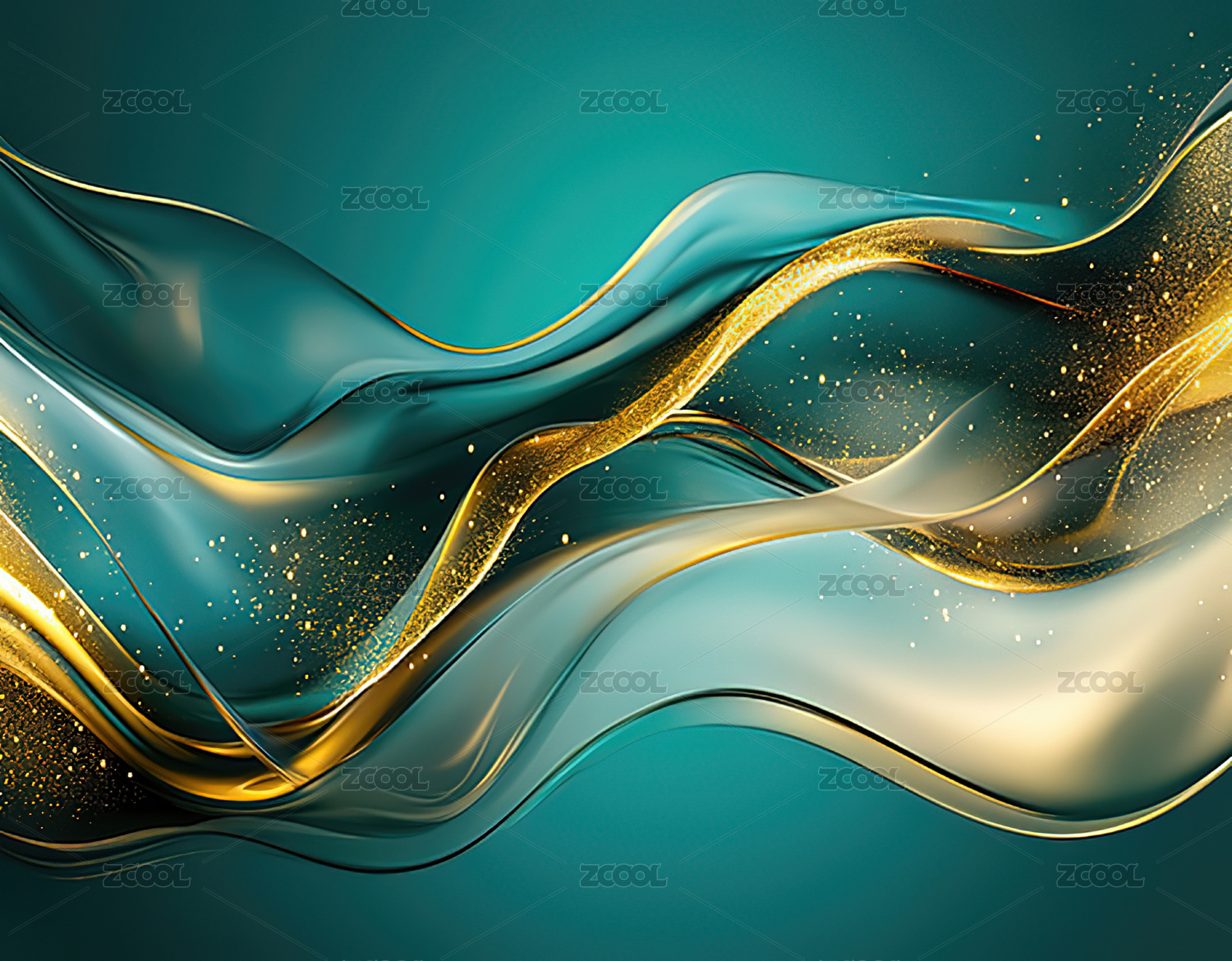 金色波浪与星光交织的梦幻背景