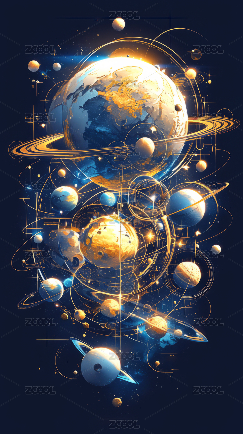 多彩的宇宙各种天体抽象插画