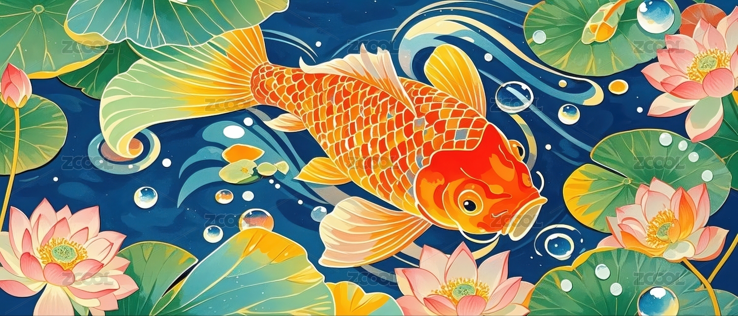 国潮风锦鲤金鱼插画