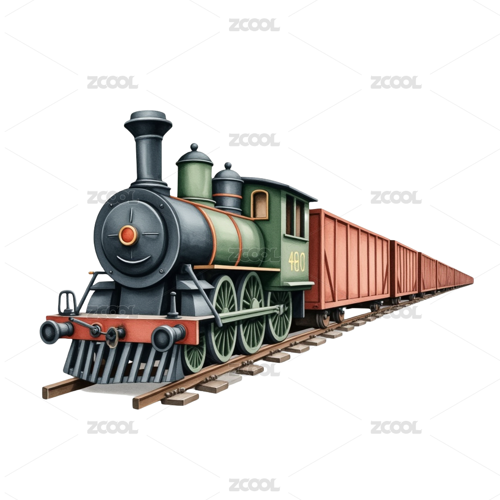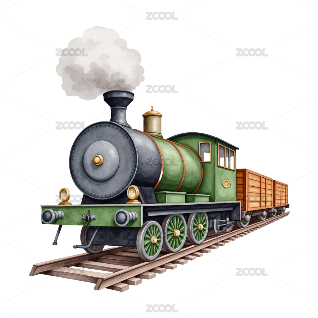 火车,蒸汽,黄色,紫色,车头,车厢,车轮,轨道,车灯,烟囱