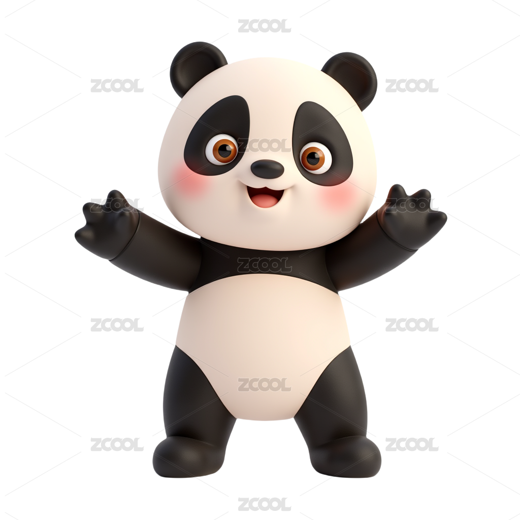 3D,可爱,卡通,熊猫,打招呼,招手,插画,动物,微笑,国宝