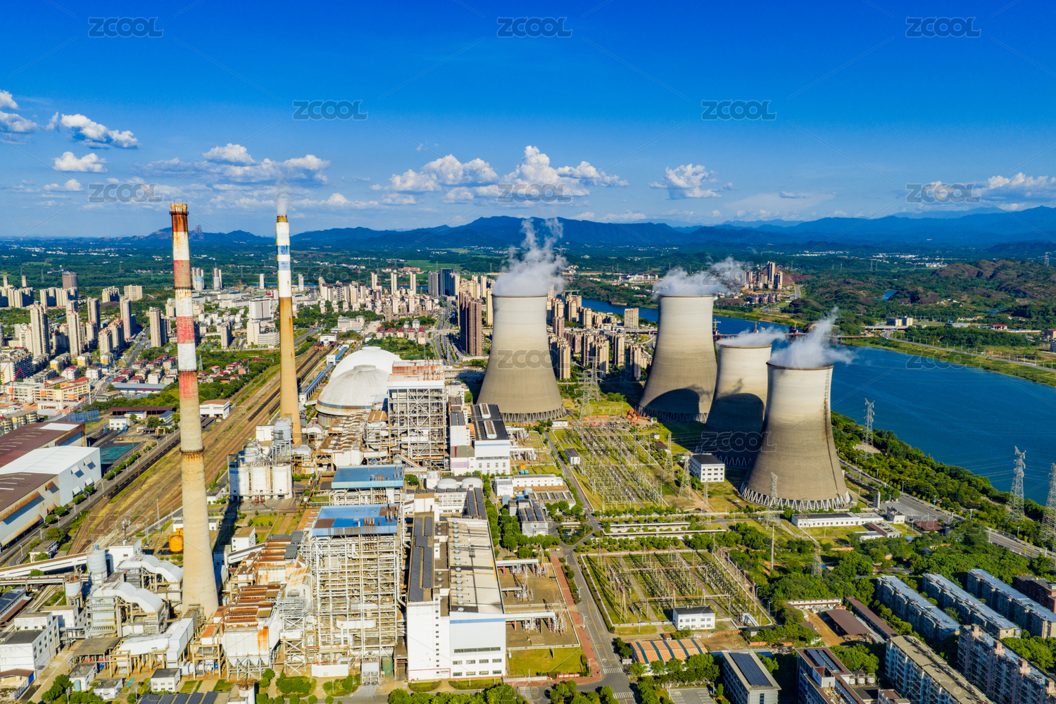 航拍河南开封火电厂热电厂发电厂烟囱冷却塔