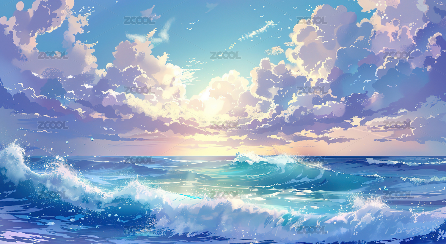 背景,自然,风景,景色,壁纸,插画,波浪,艺术,绘画,天空