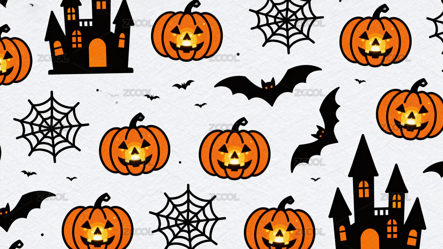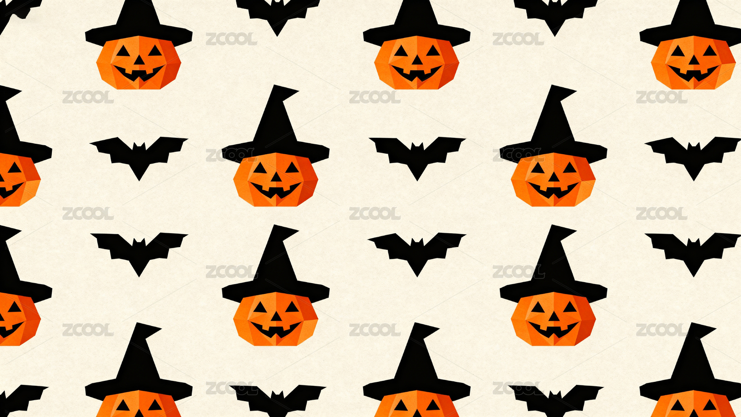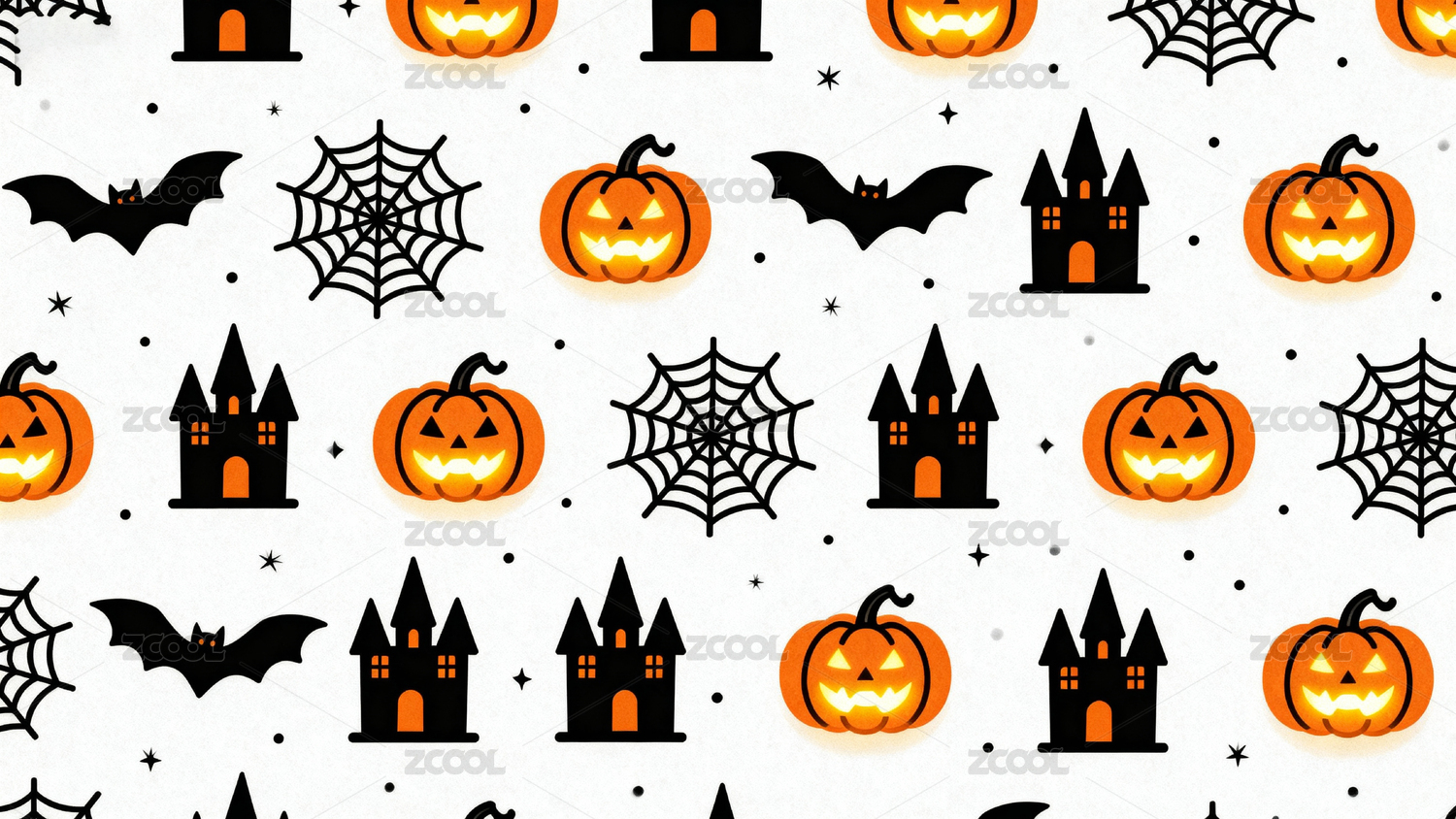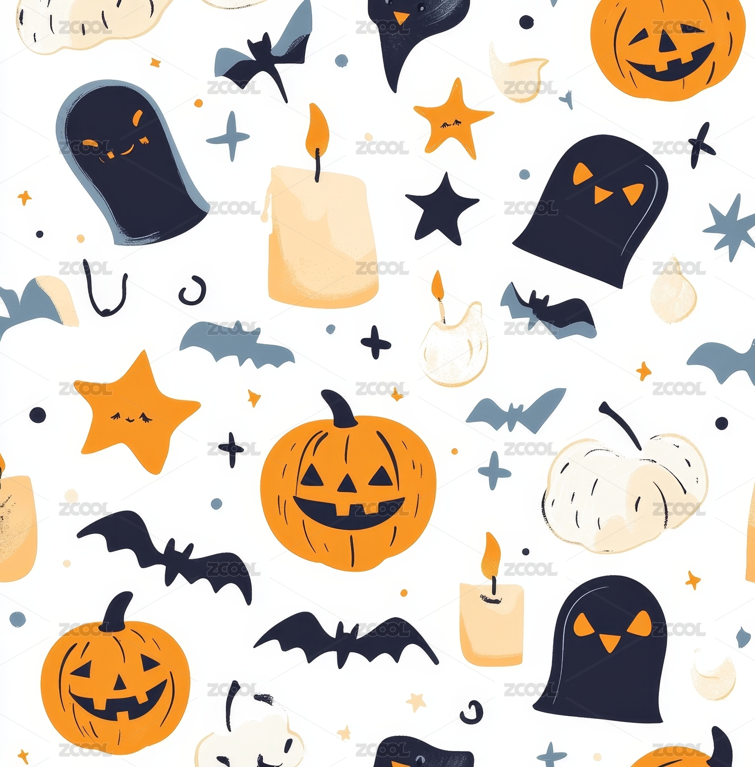 万圣节南瓜幽灵蝙蝠蜘蛛月亮叶子无缝