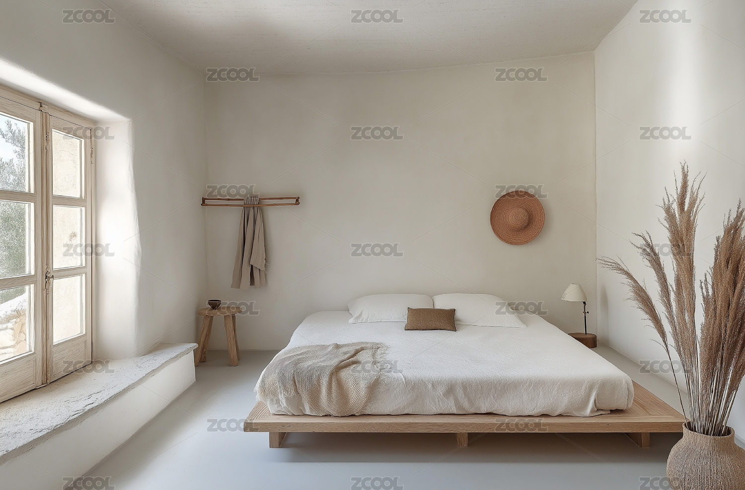 卧室,床,挂画,吊灯,绿植,地毯,落地窗,现代,家,设计