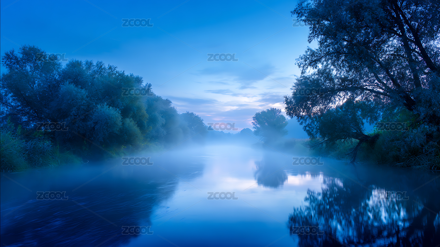 湖畔,晨雾,山湖,倒影,树影,湖面,雾气,清晨,水面,反射