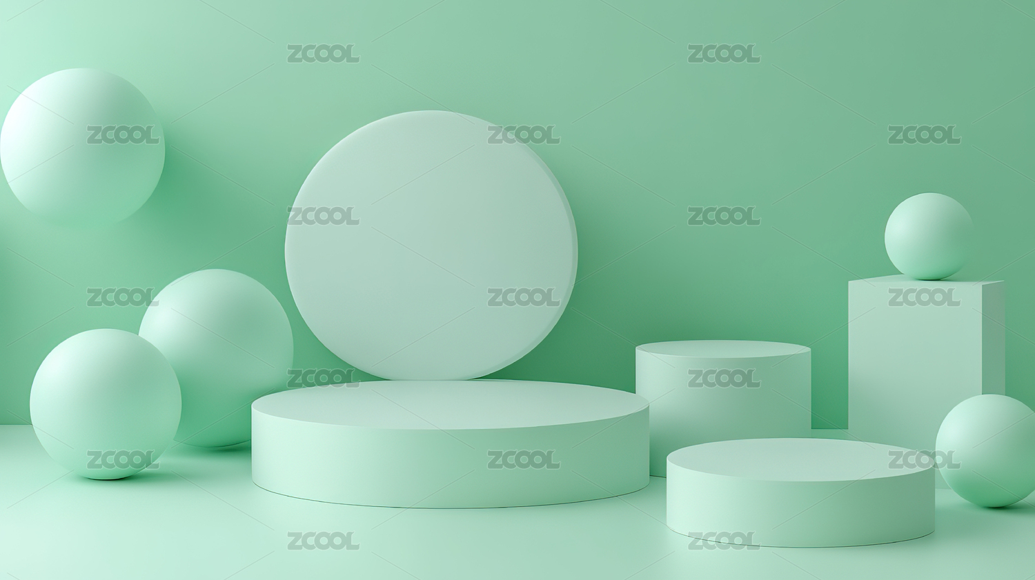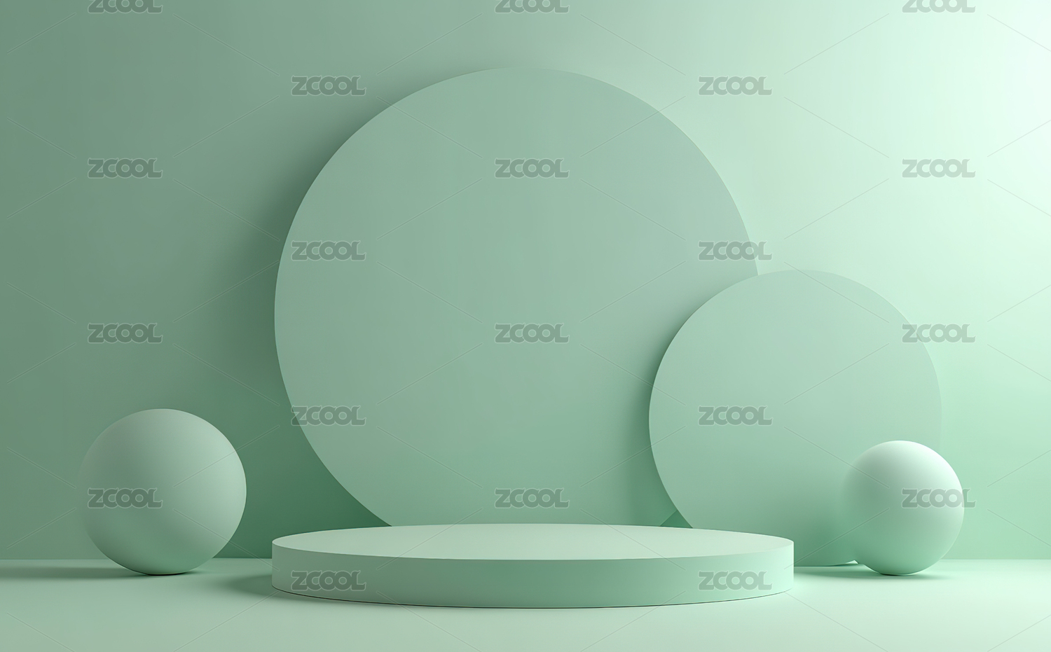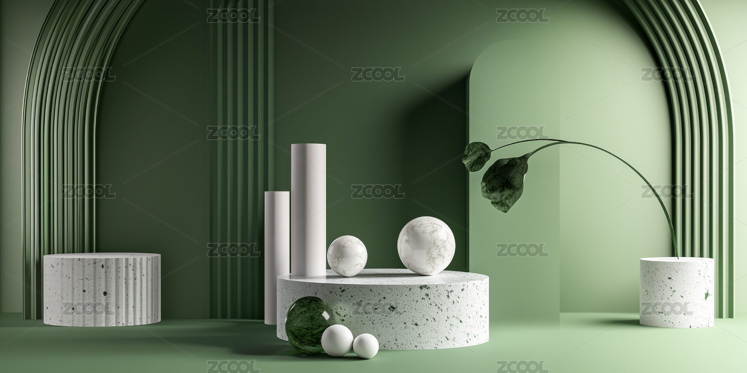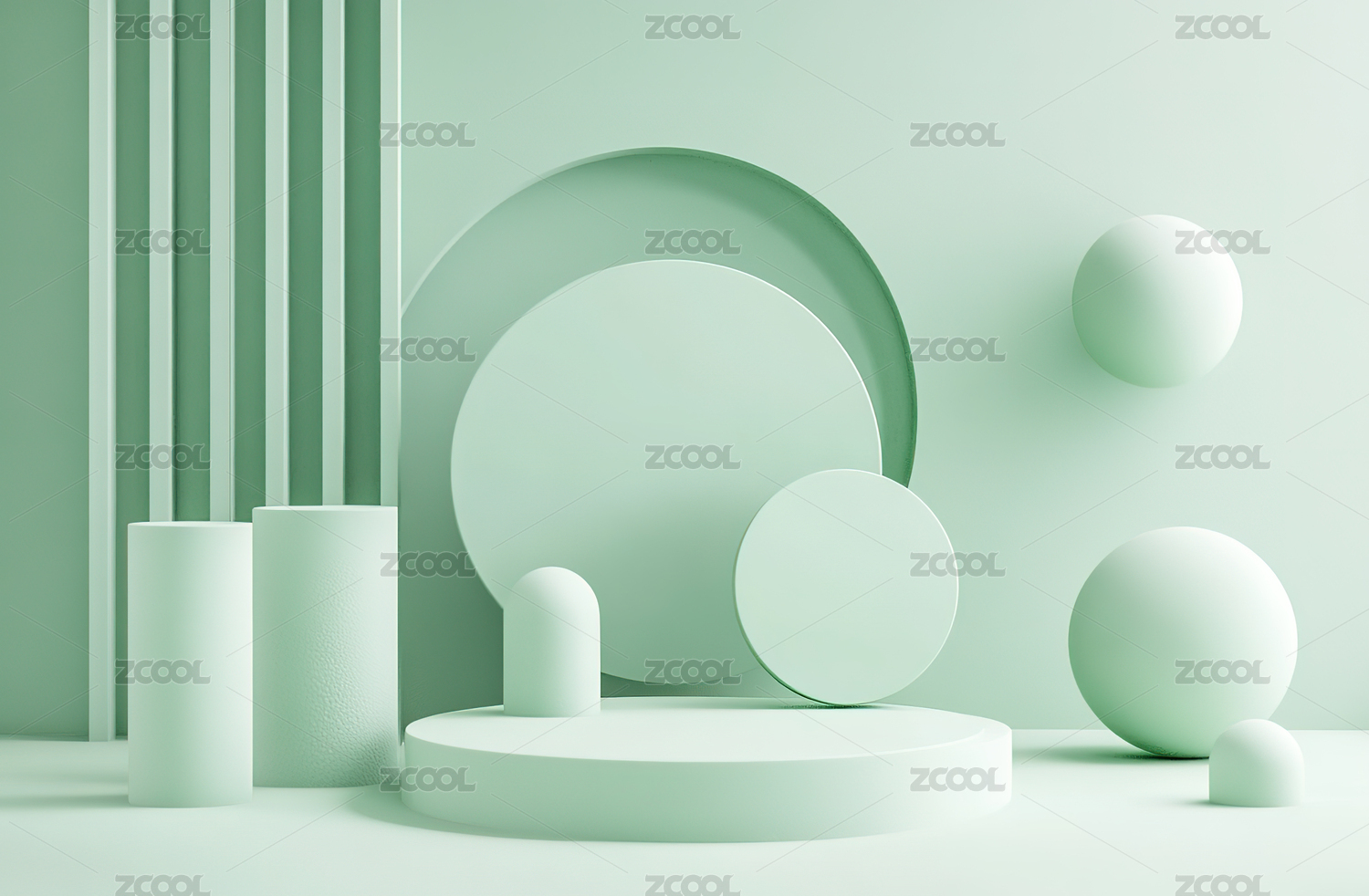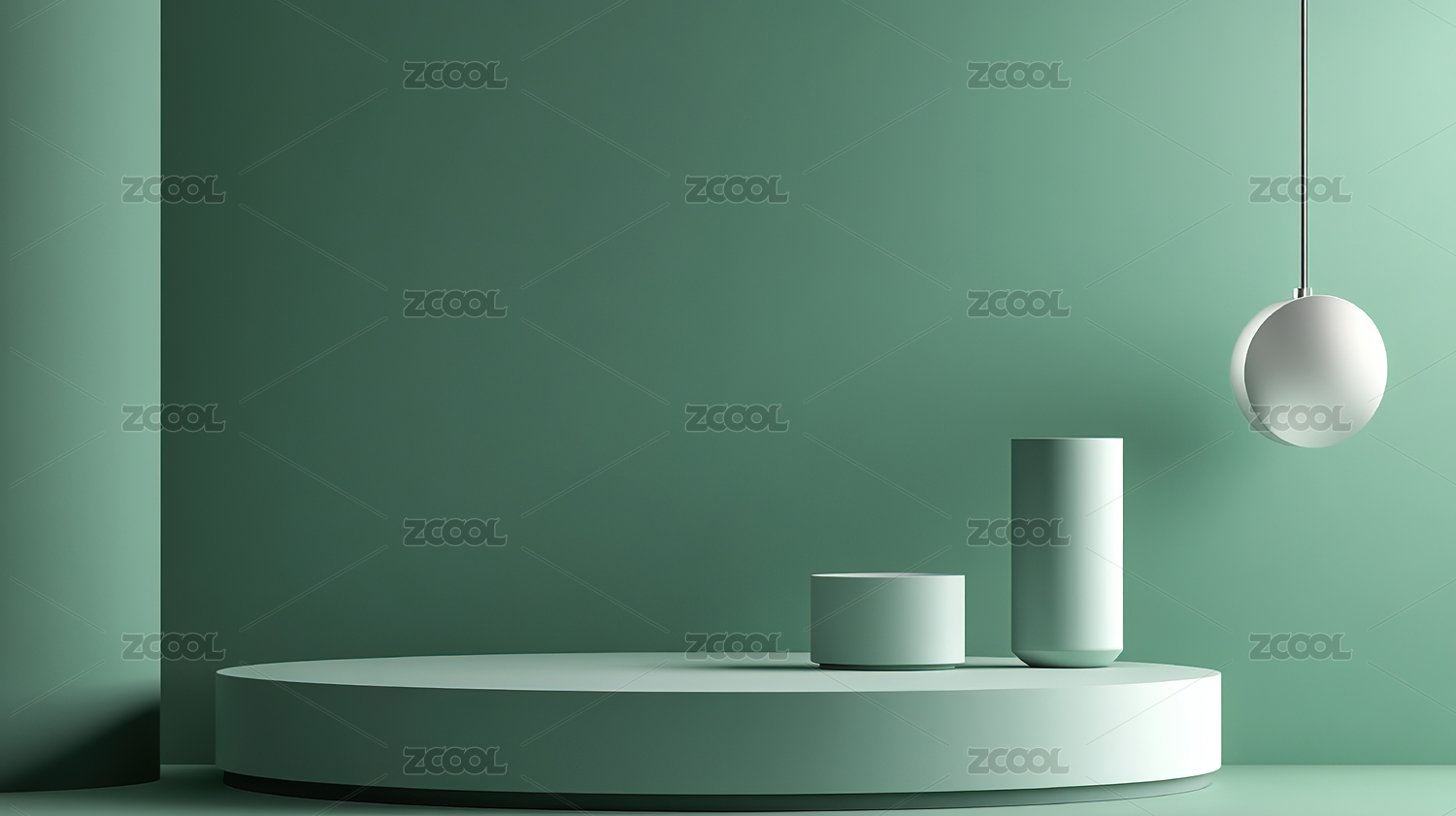 几何,形状,球体,白色,绿色,灰色,圆柱,讲台,简约