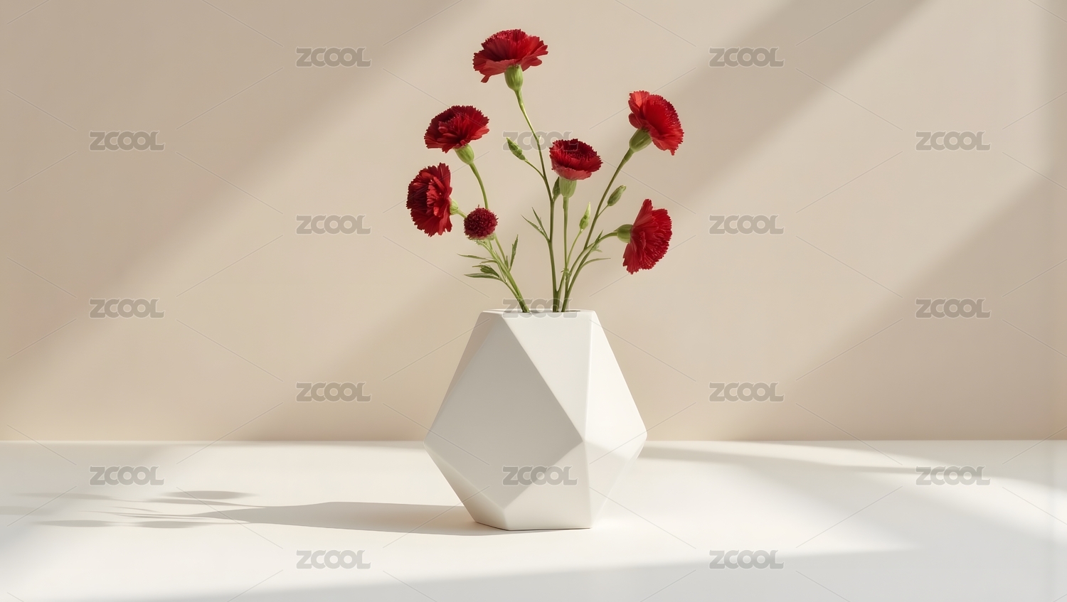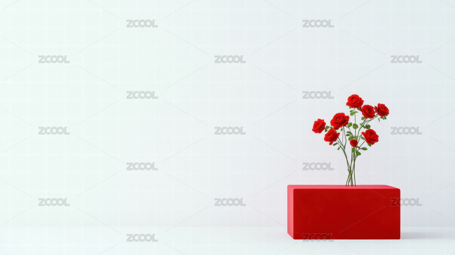 简约,红玫瑰,鲜艳,白色,底座,现代,浅灰,墙壁,圆柱形,物体