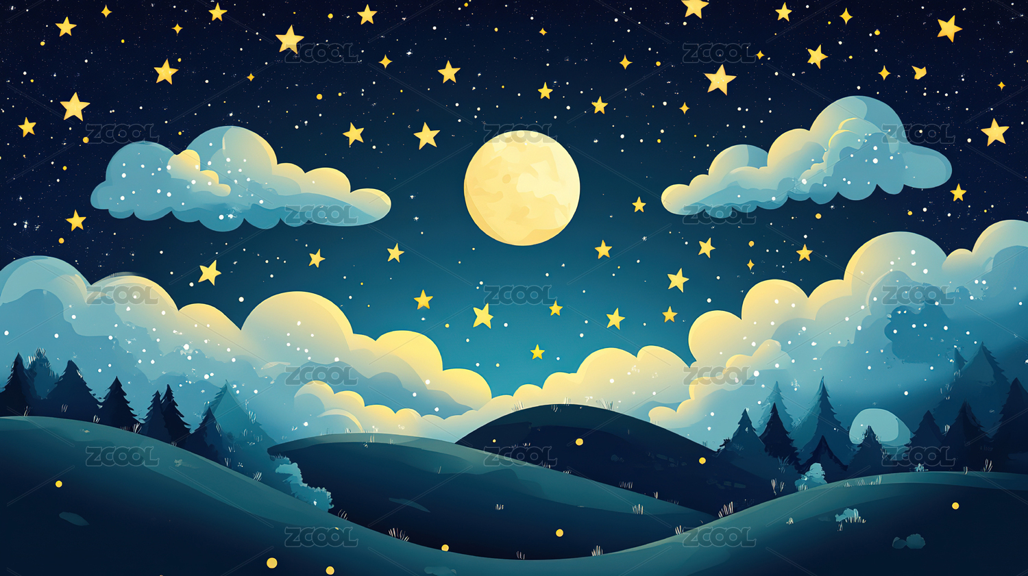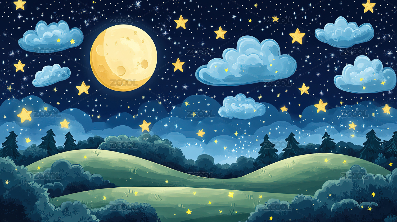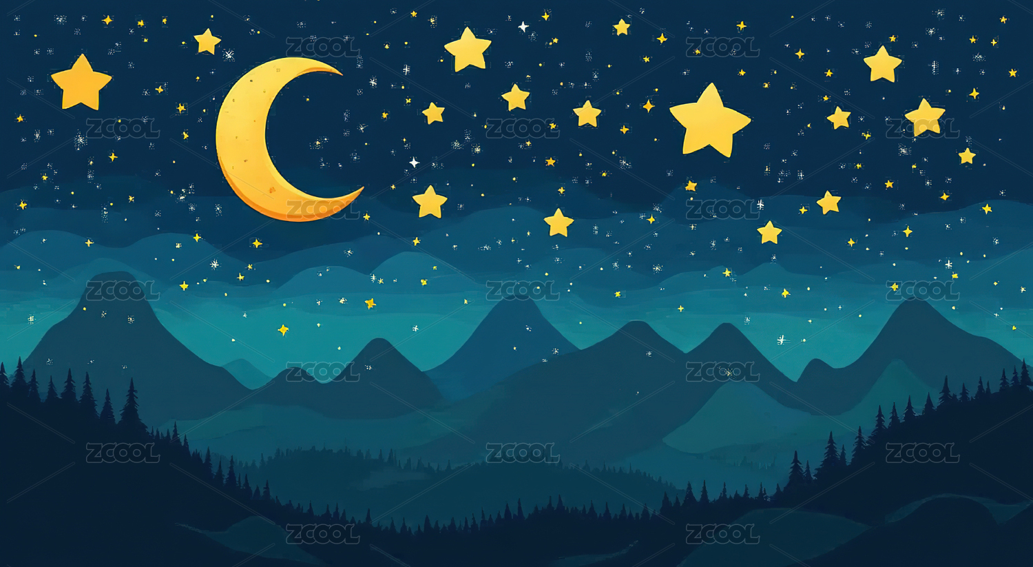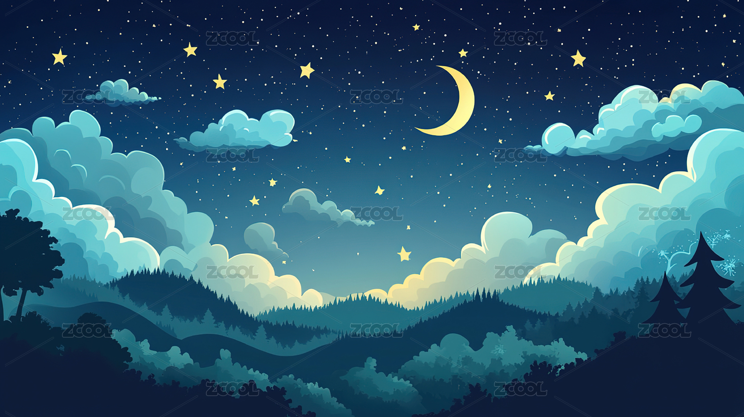 插画,自然,植物,天空,树,月亮,户外,生长,清新,月球