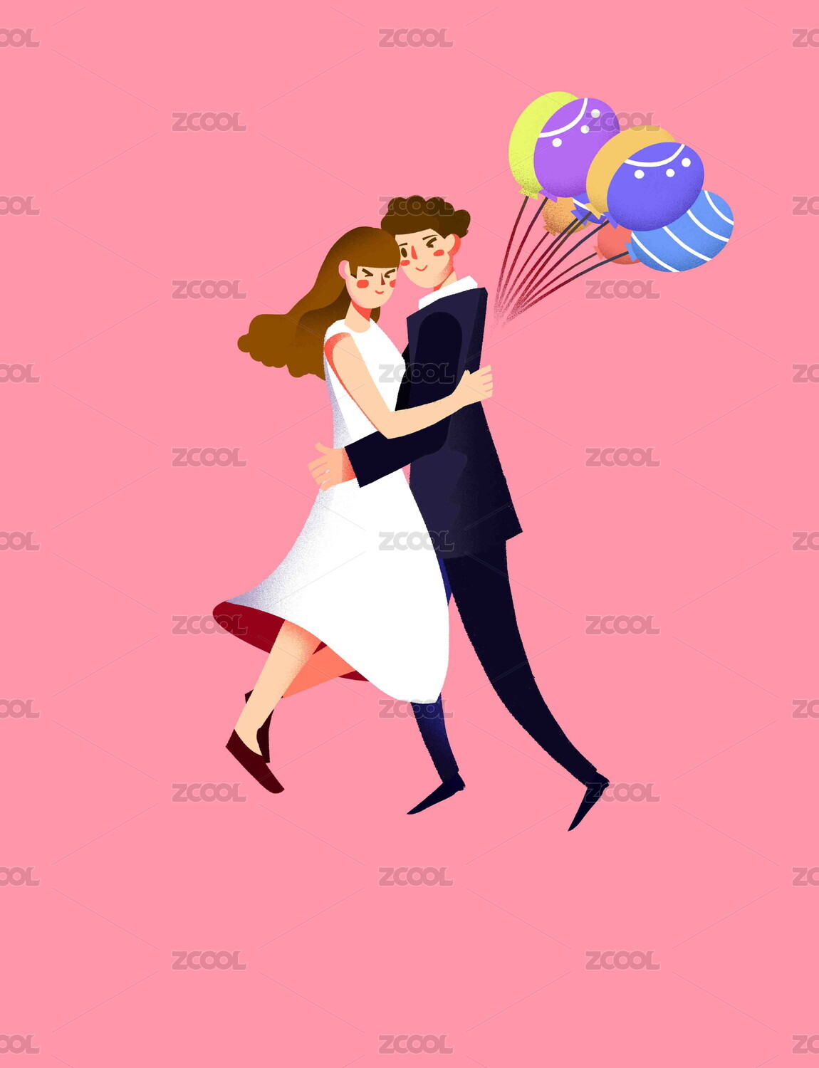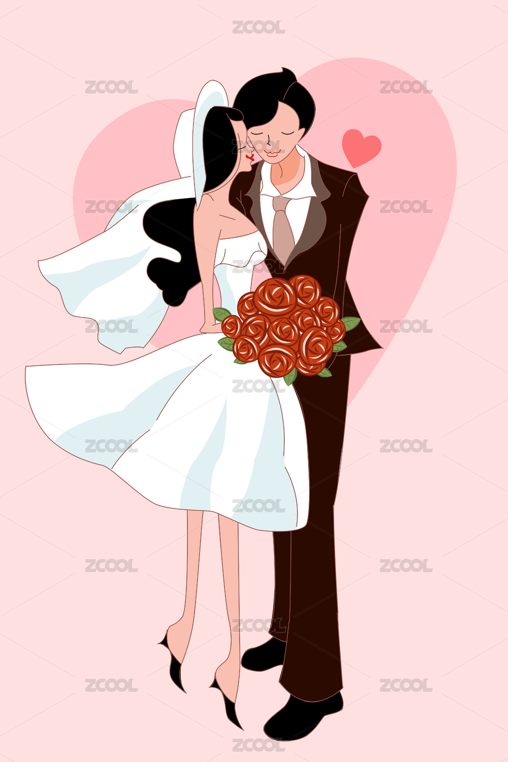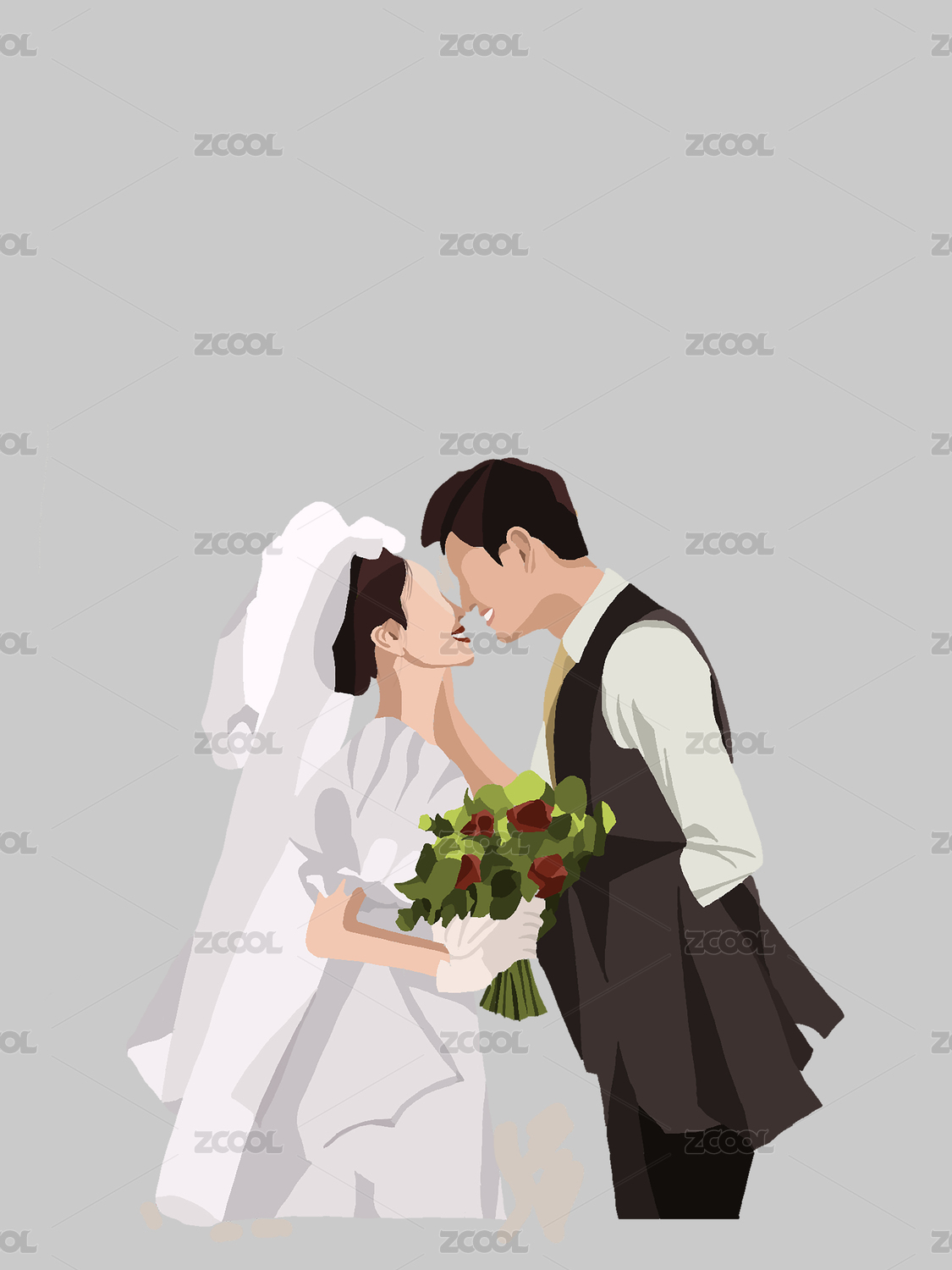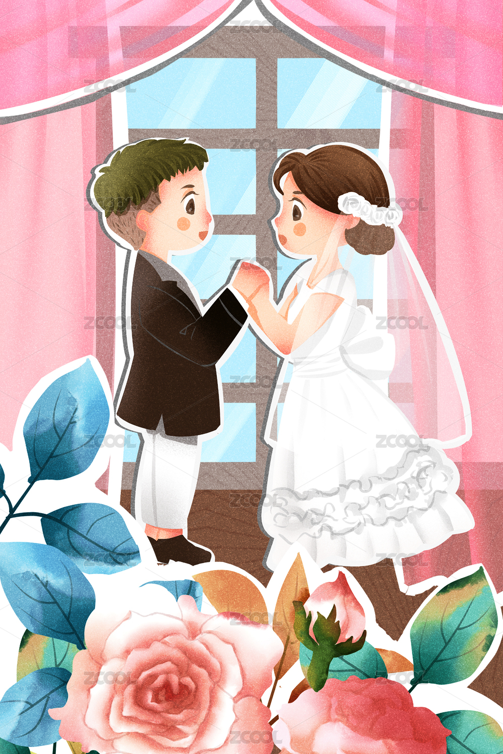 温馨浪漫的婚礼纪念 结婚欢迎海报手绘插画