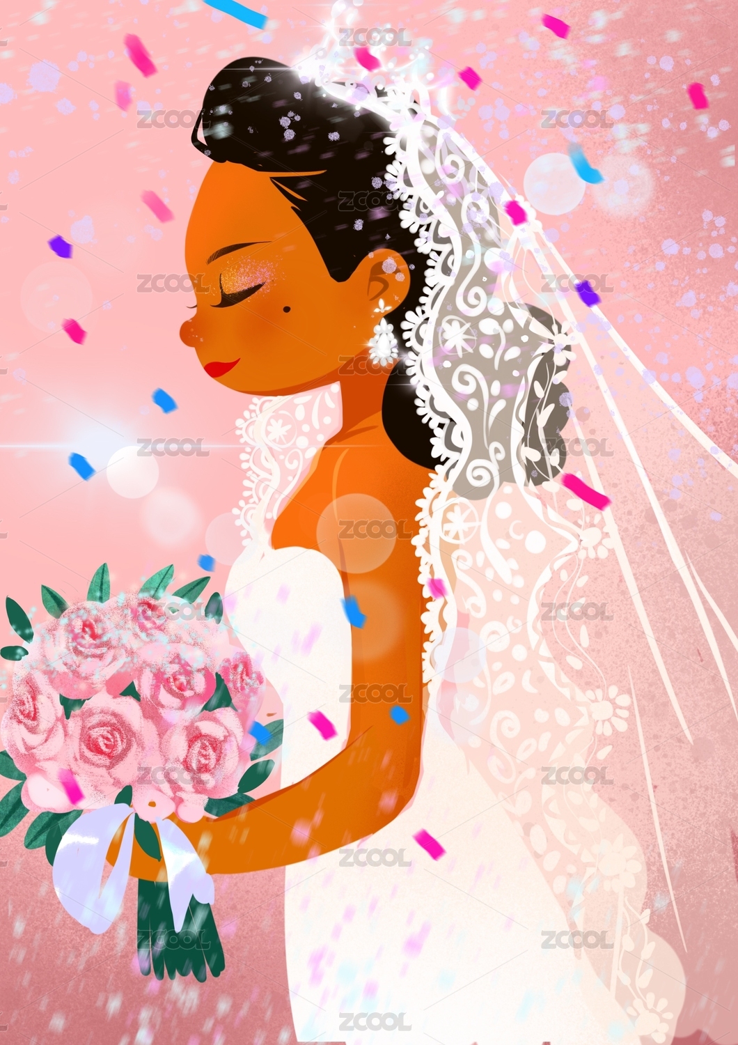 插画,艺术,设计,美女,高雅,王冠,喜庆,新娘,浪漫,爱情