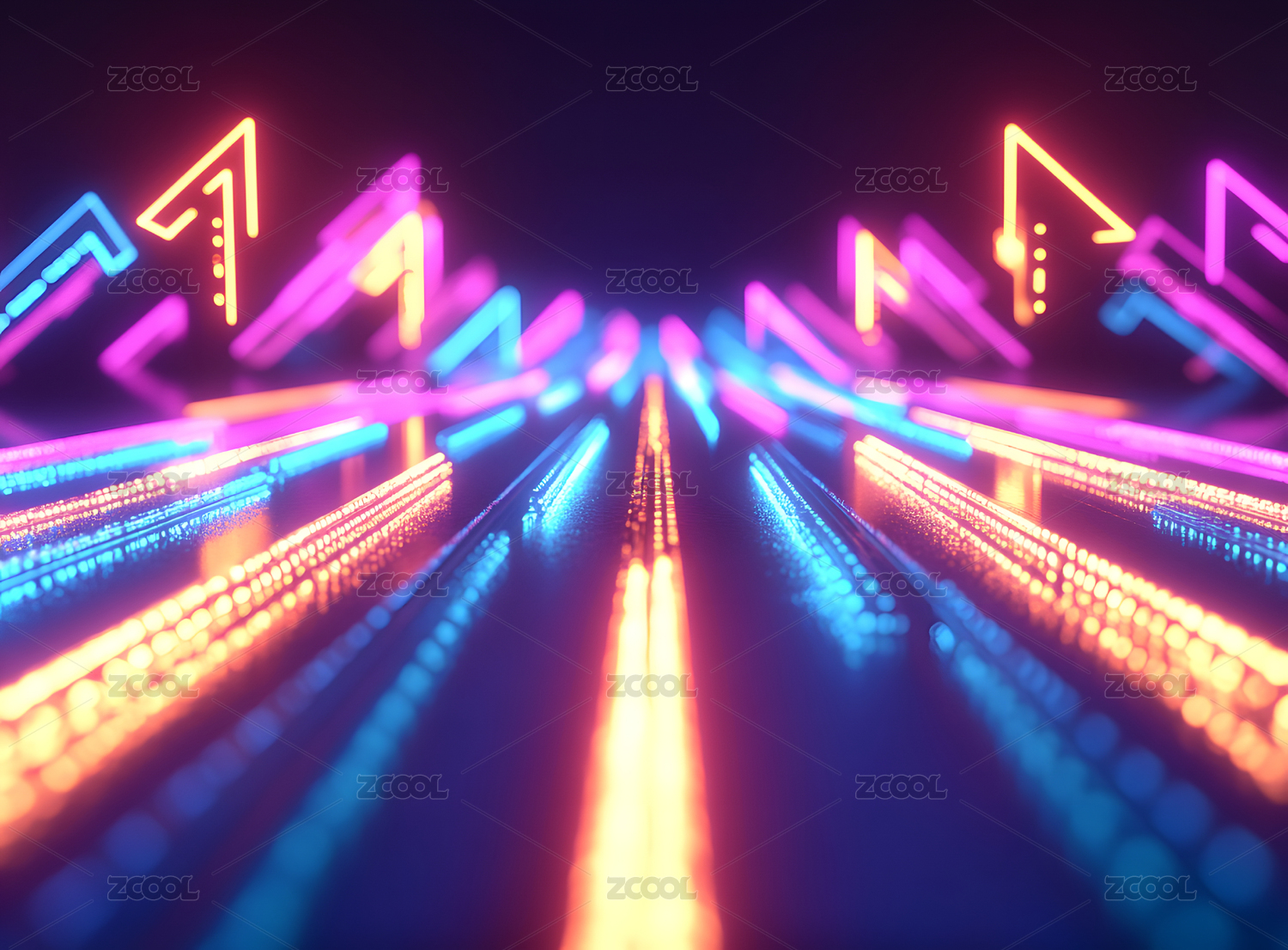 抽象霓虹灯发光几何线条3D渲染商务背景
